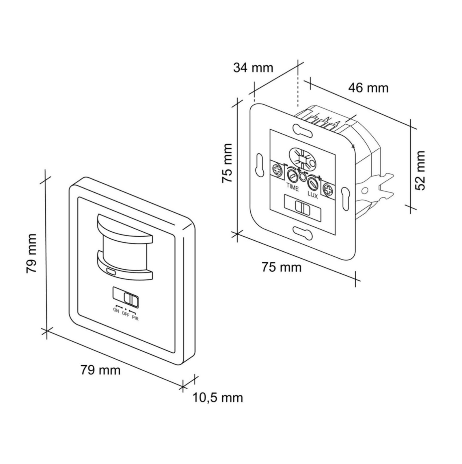 | Mit diesem Infrarot Bewegungsmelder können LED Lampen und Leuchten über Bewegungen gesteuert werden. Der Erfassungsbereich liegt bei bis zu 9m bei einem Erfassungswinkel von 160°. Die Ausschaltverzögerung liegt bei 10 Sekunden bis 30 Minuten. Auch auf Basis der Umgebungshelligkeit (3 bis 2.000 LUX) kann der Infrarot Sensor gesteuert werden. Der Bewegungssensor kann auch ausgeschaltet werden, damit die LED Lampen oder Leuchten konstant leuchten oder ausgeschaltet sind. Dieses anthrazitfarbene Modell ist für die Unterputz Montage geeignet. |