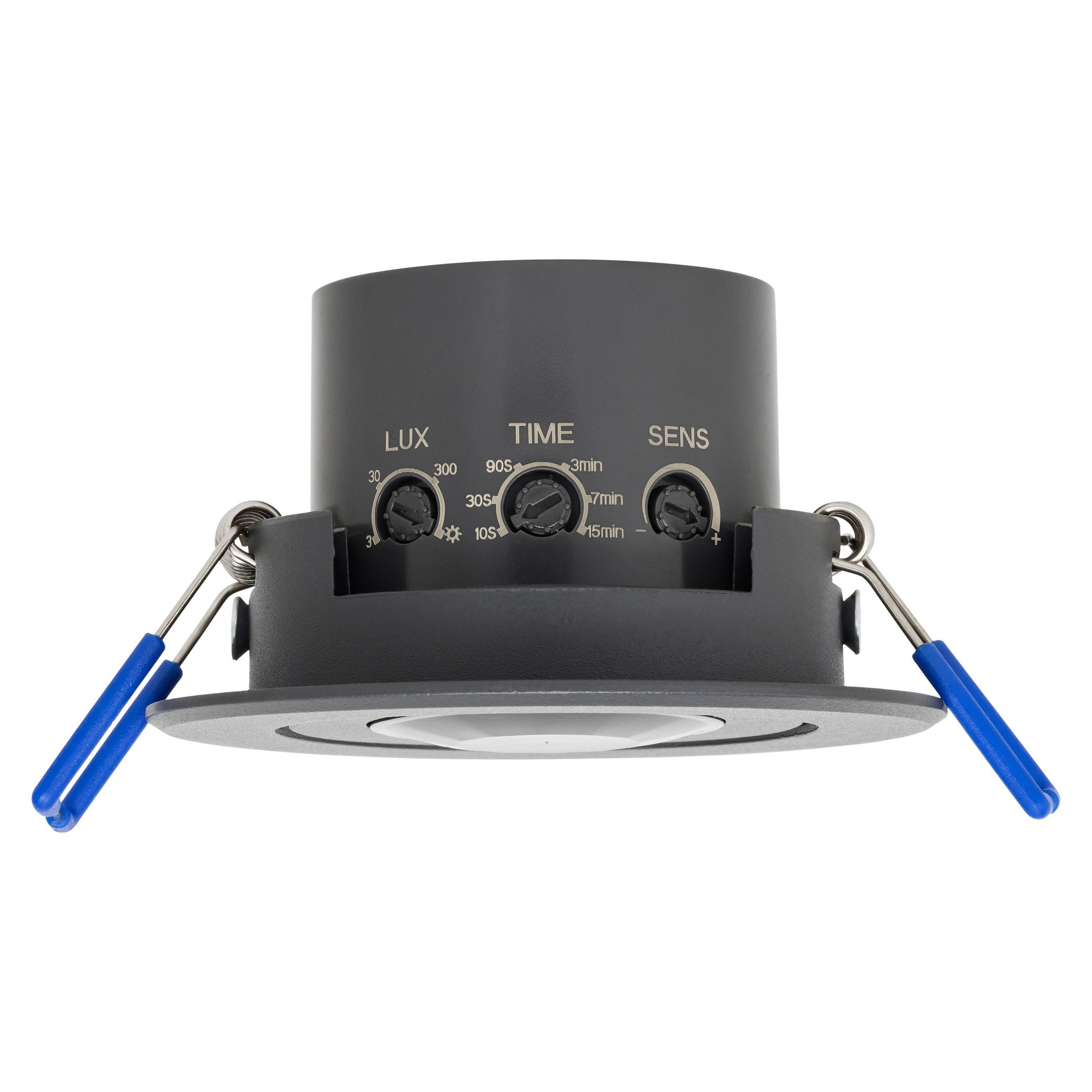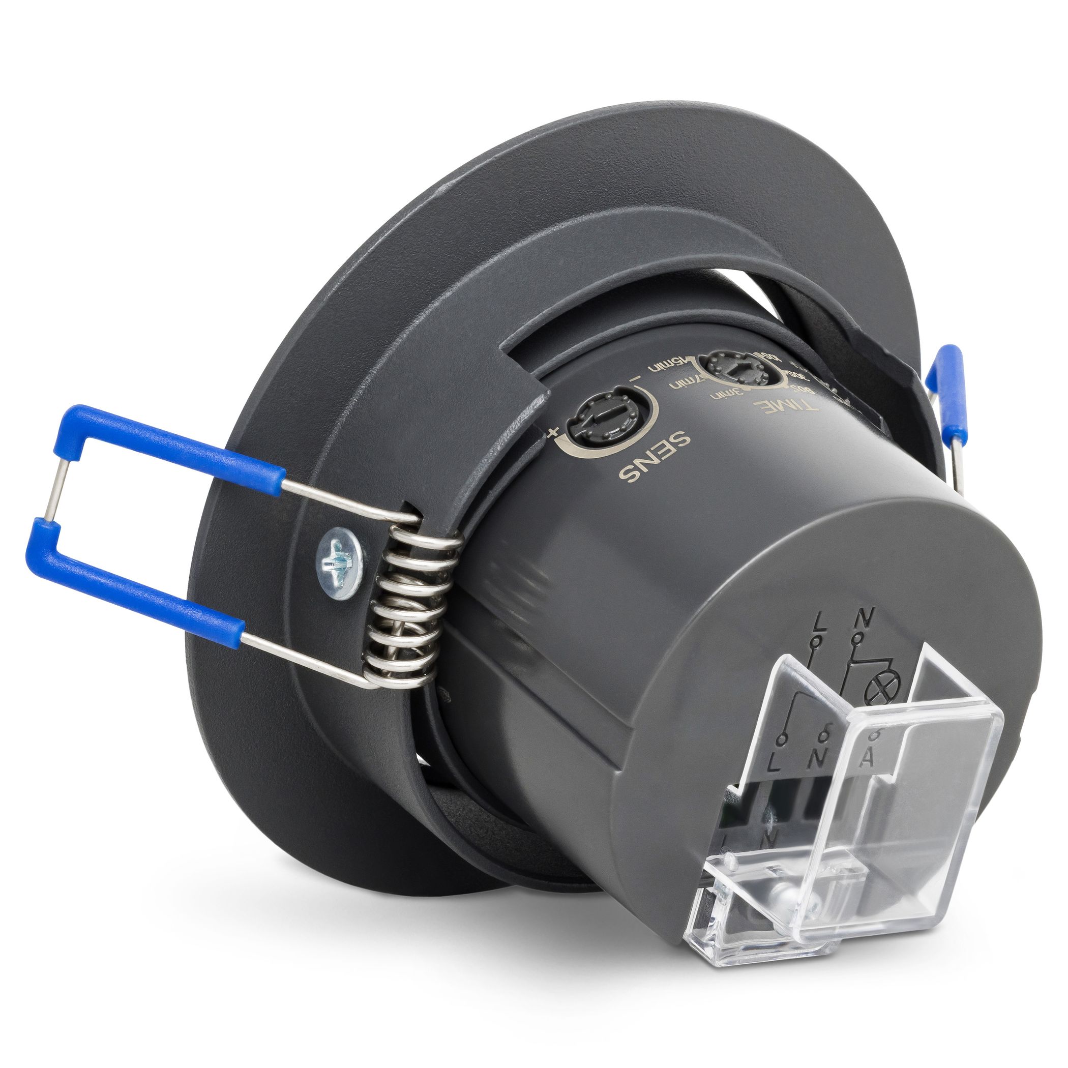 Thanks to its flat design, this recessed motion detector blends almost seamlessly into the ceiling. Suitable for hollow ceilings with a flush-mounted cut-out diameter of 65–75 mm. With its IP20 protection rating, this detector is suitable for indoor use.