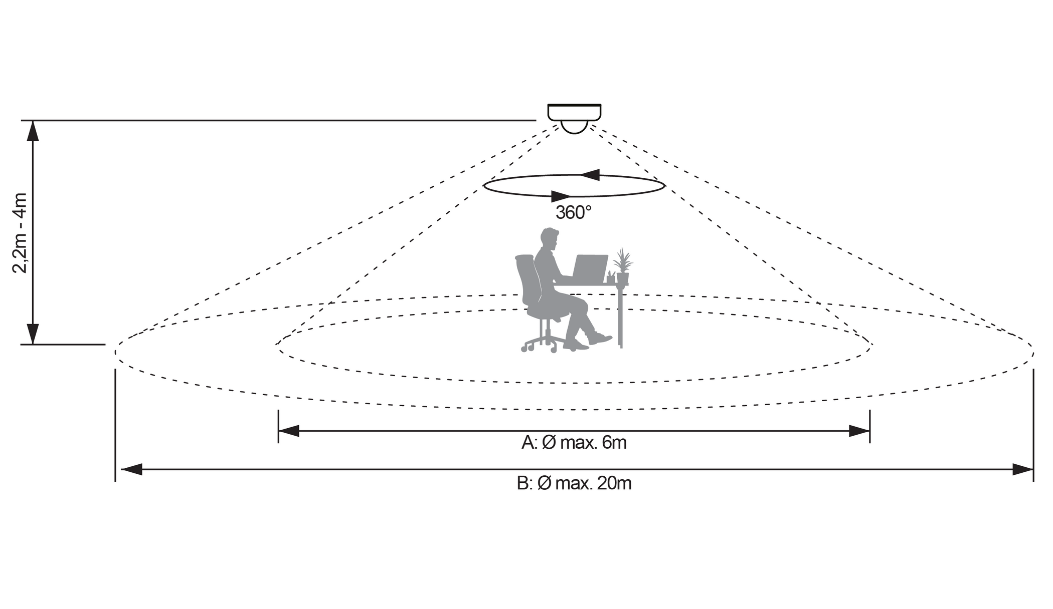 | Detection range: | 2-20m (<24°C)/360° |