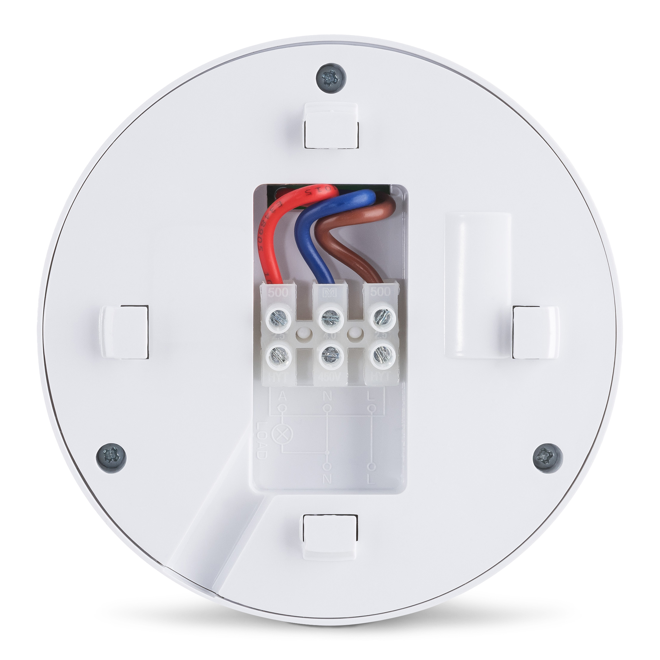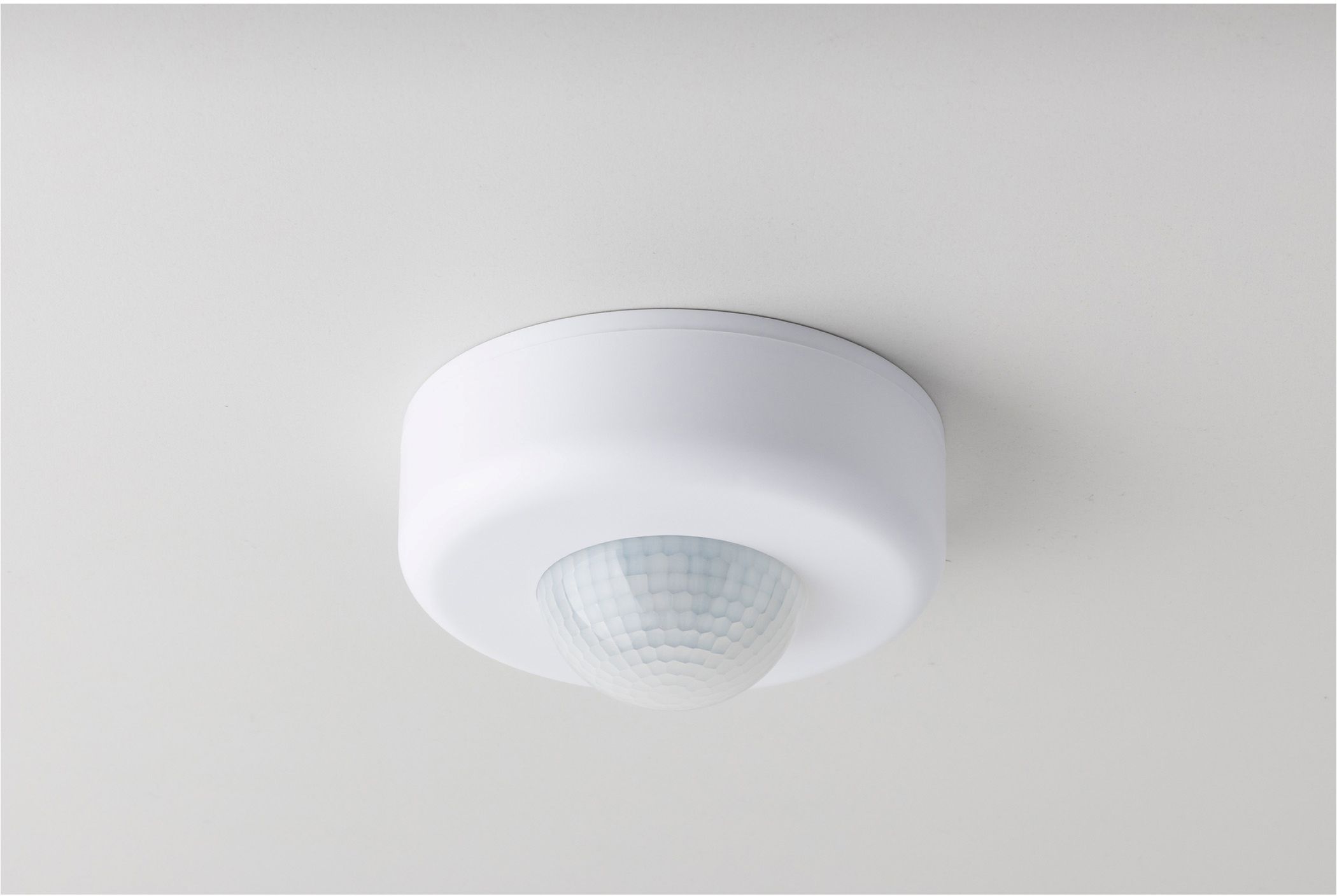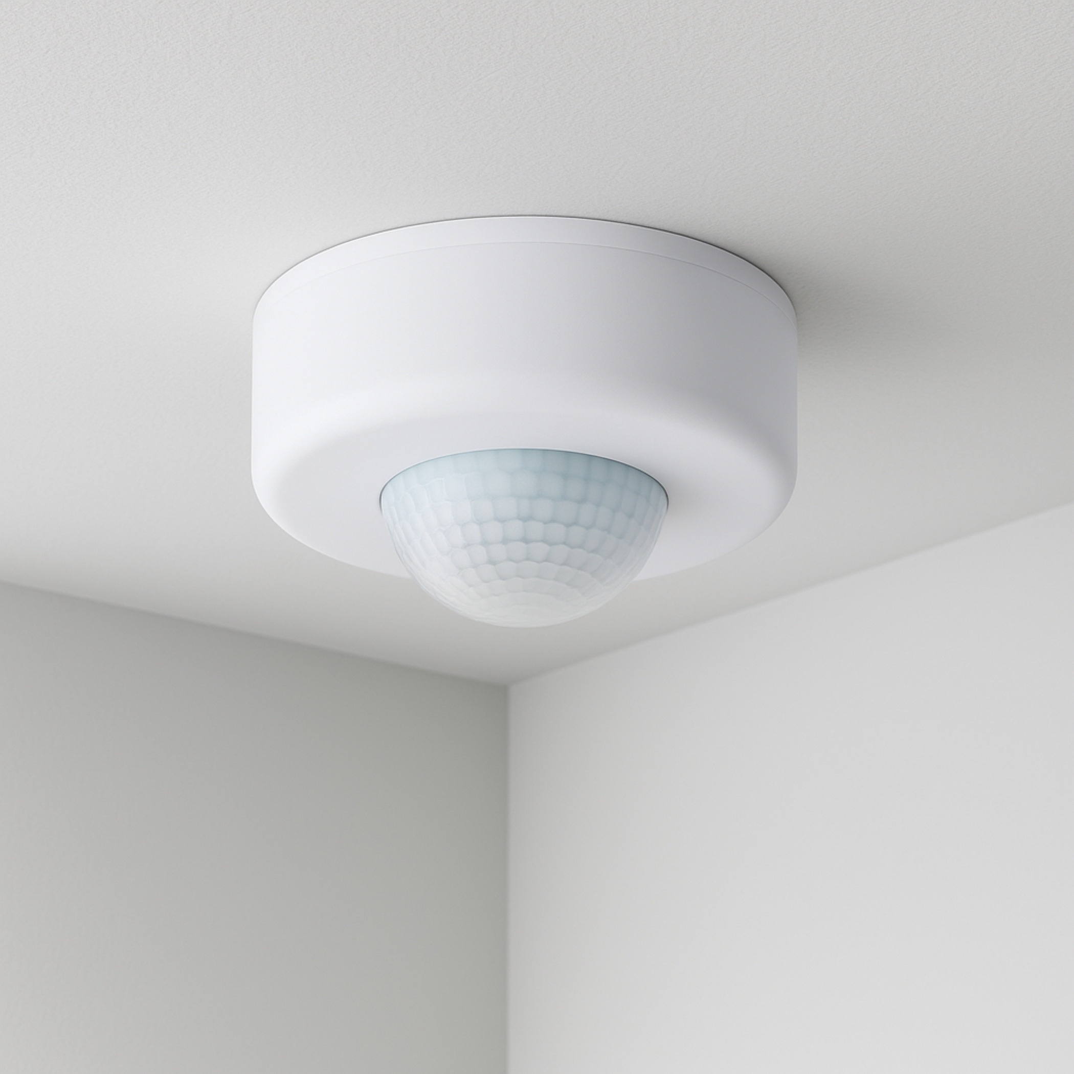 This motion detector is suitable for surface-mounted ceiling installation indoors. The protection class is IP20.