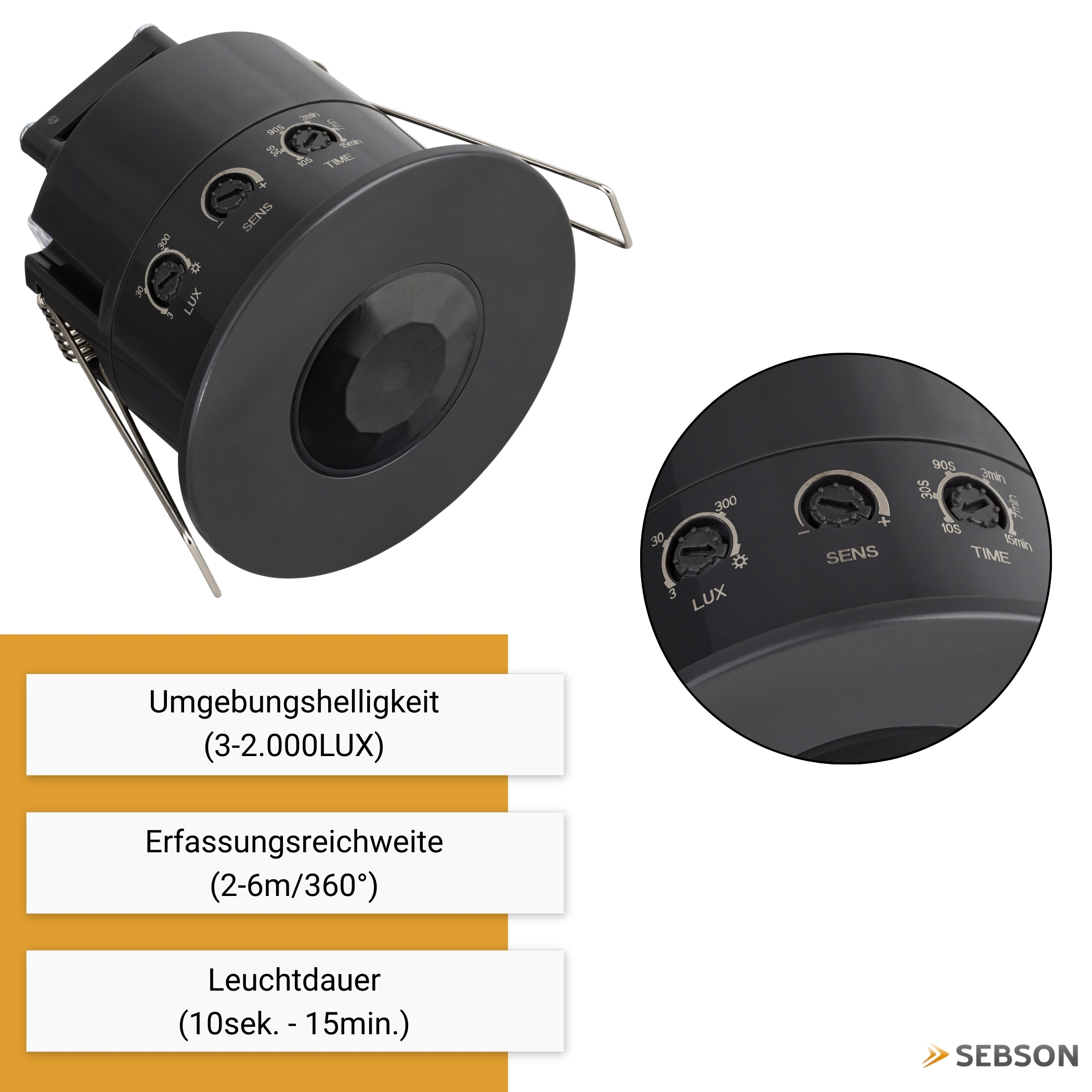 Flush-mounted, infrared, range 2-6m/360°, max. 1000/2000W, IP54, 3-wire