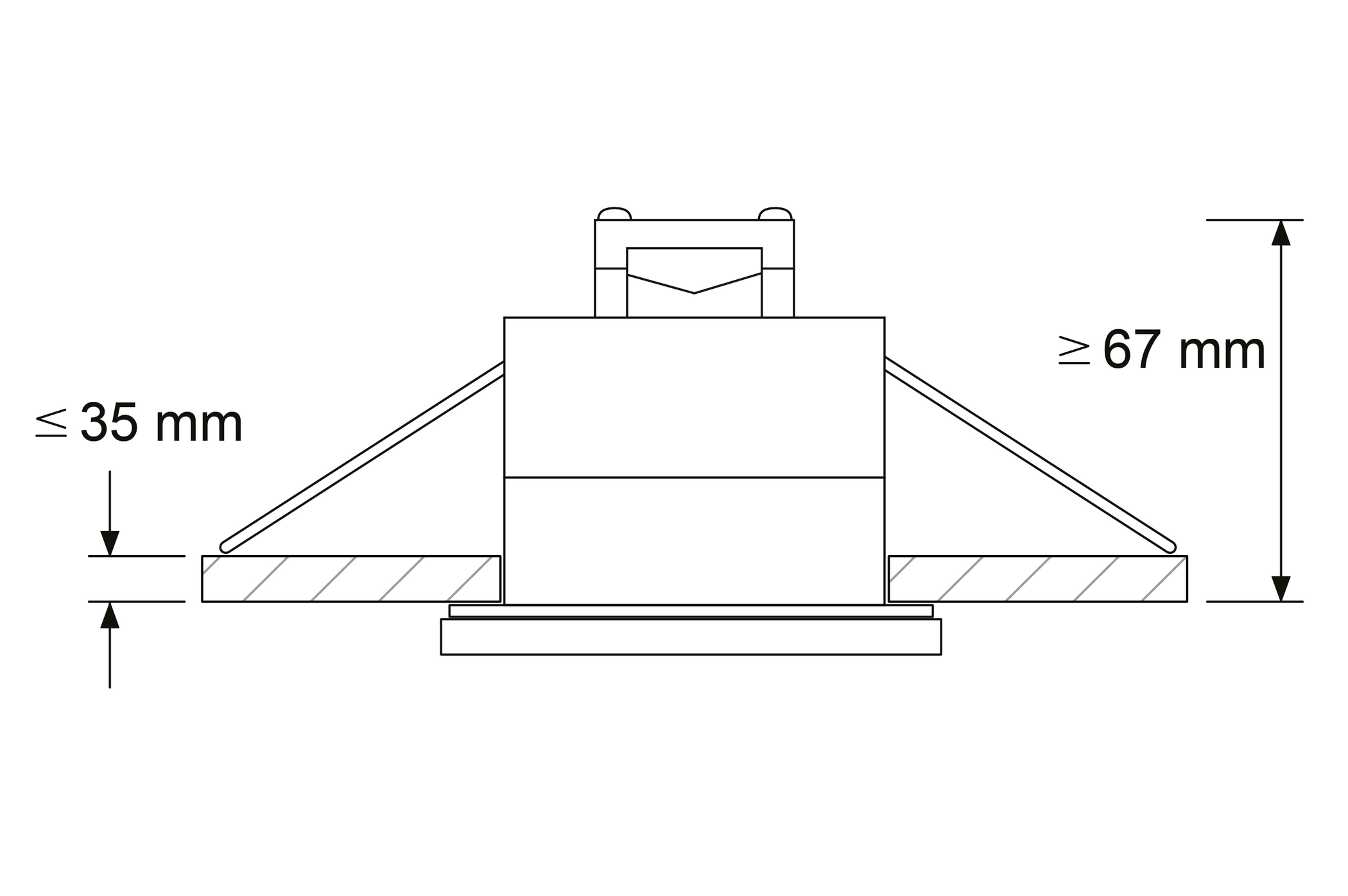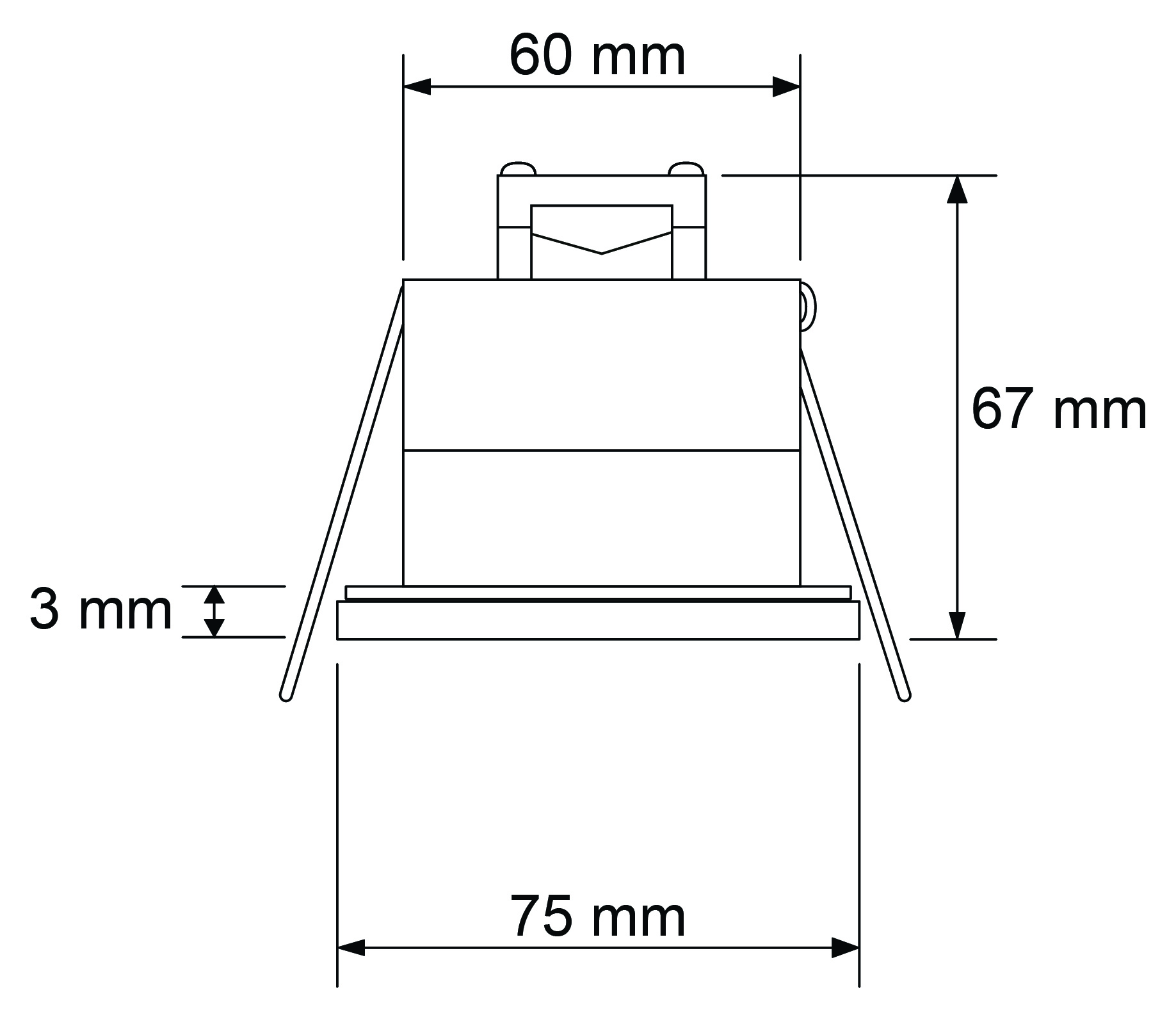 Thanks to its flat design, this built-in motion detector fits almost seamlessly into the ceiling. Suitable for flush-mounted cavity ceilings with an installation hole diameter of 63-68 mm. Thanks to its IP54 protection rating, the detector is suitable for both indoor and outdoor use.