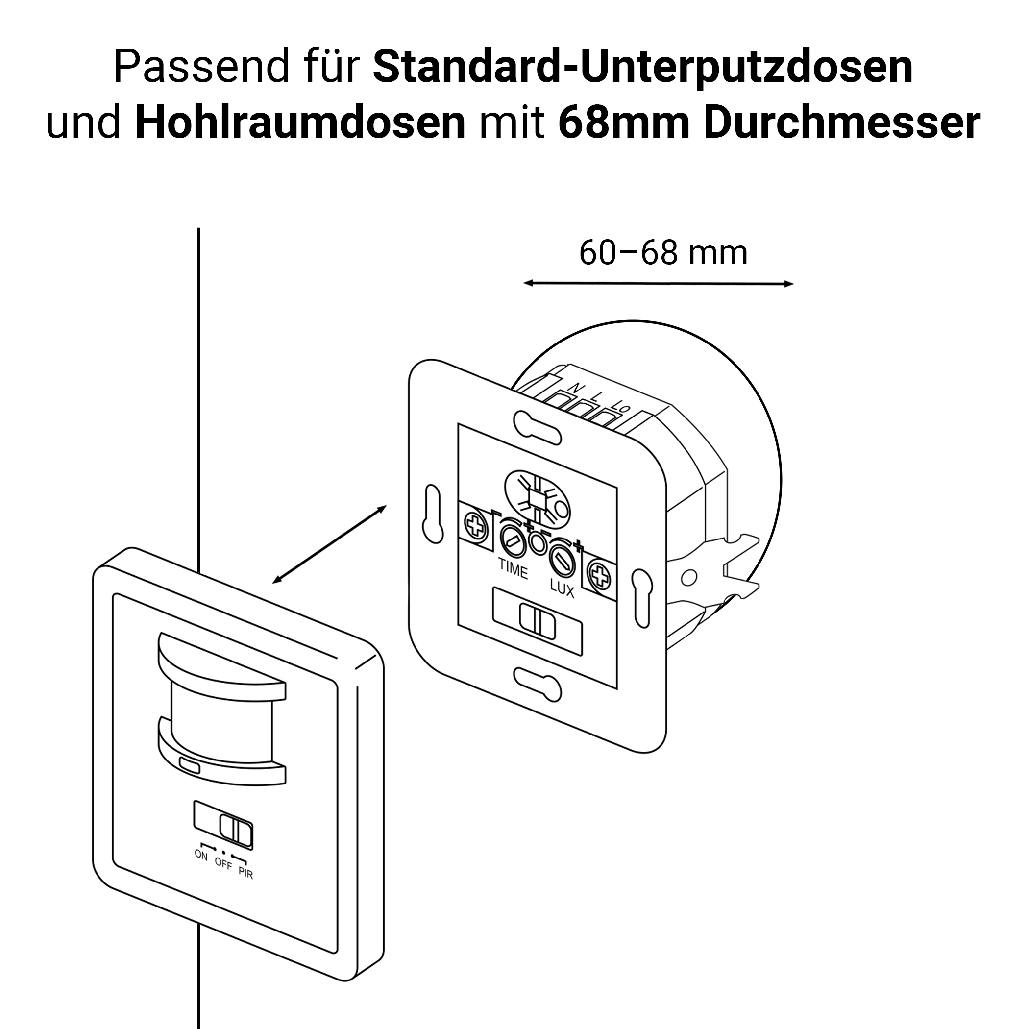 | Suitable for cavity boxes: | 68mm |