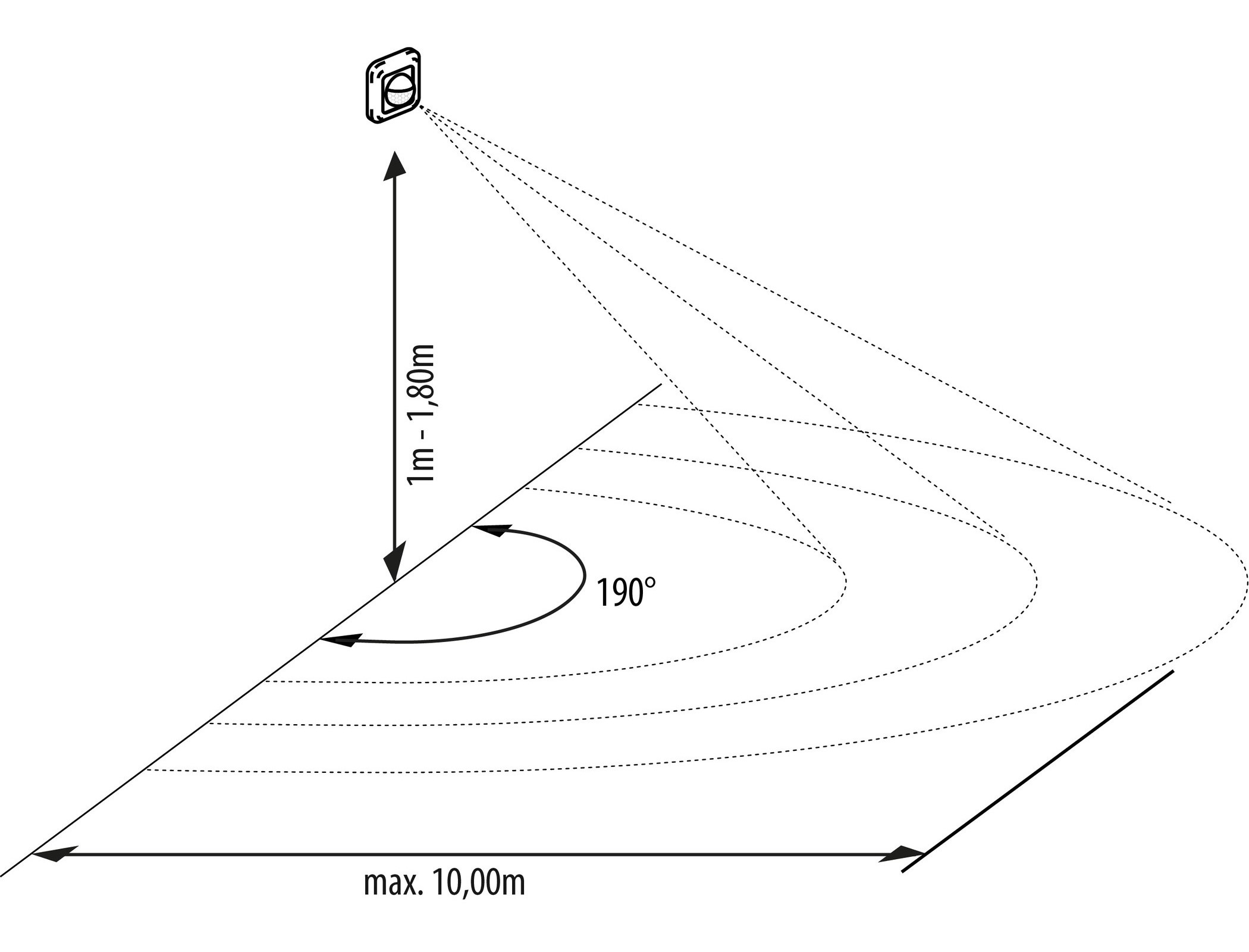 | Detection range: | Max. 10m (<24°C)/ 190° |