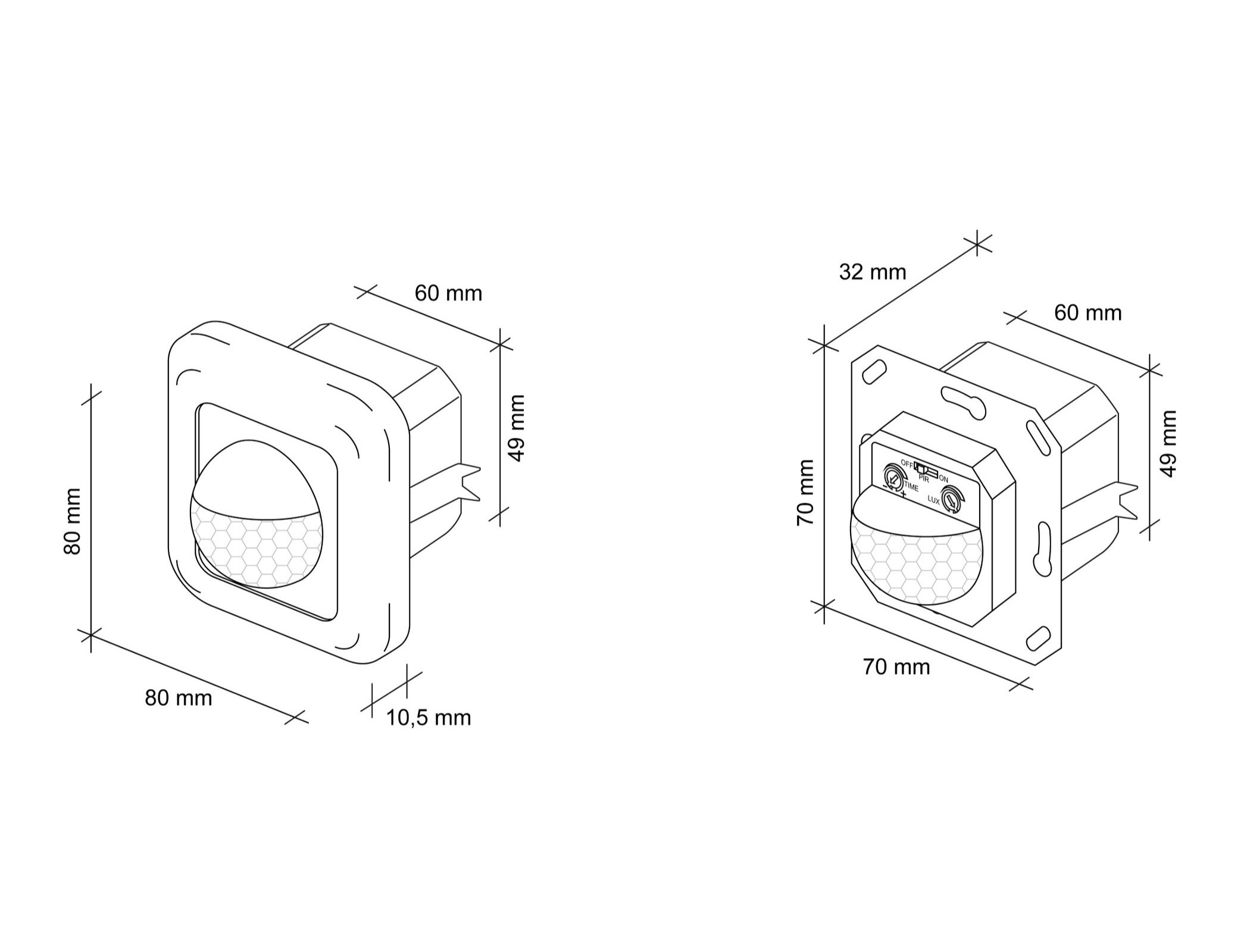 This flush-mounted motion detector is suitable for wall mounting.