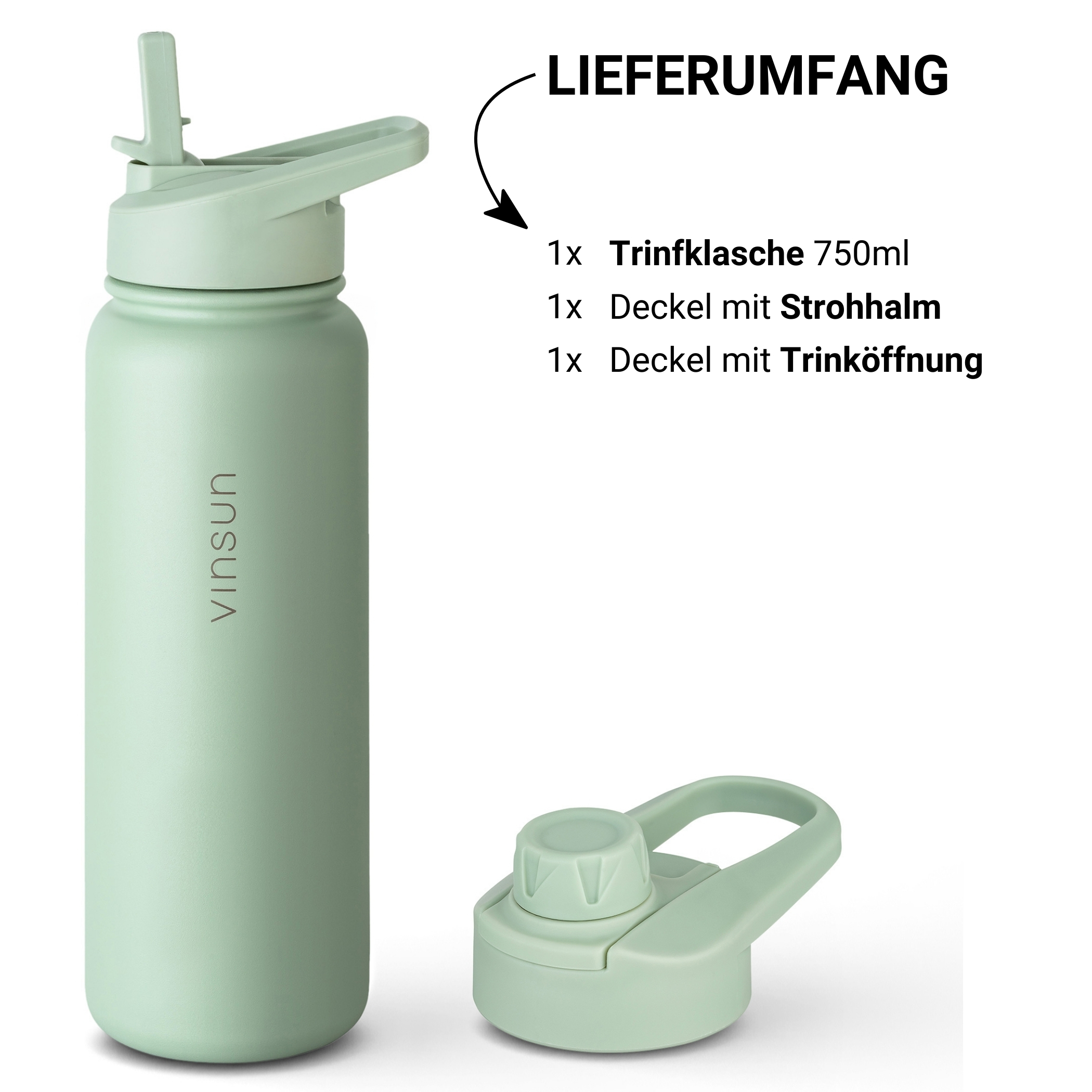 The thermal bottle comes with two leak proof lids to suit your individual preferences. The first lid has a generous drinking opening. Perfect for a quick sip during training. The second lid has a flip-up straw to give you extra convenience on the go.