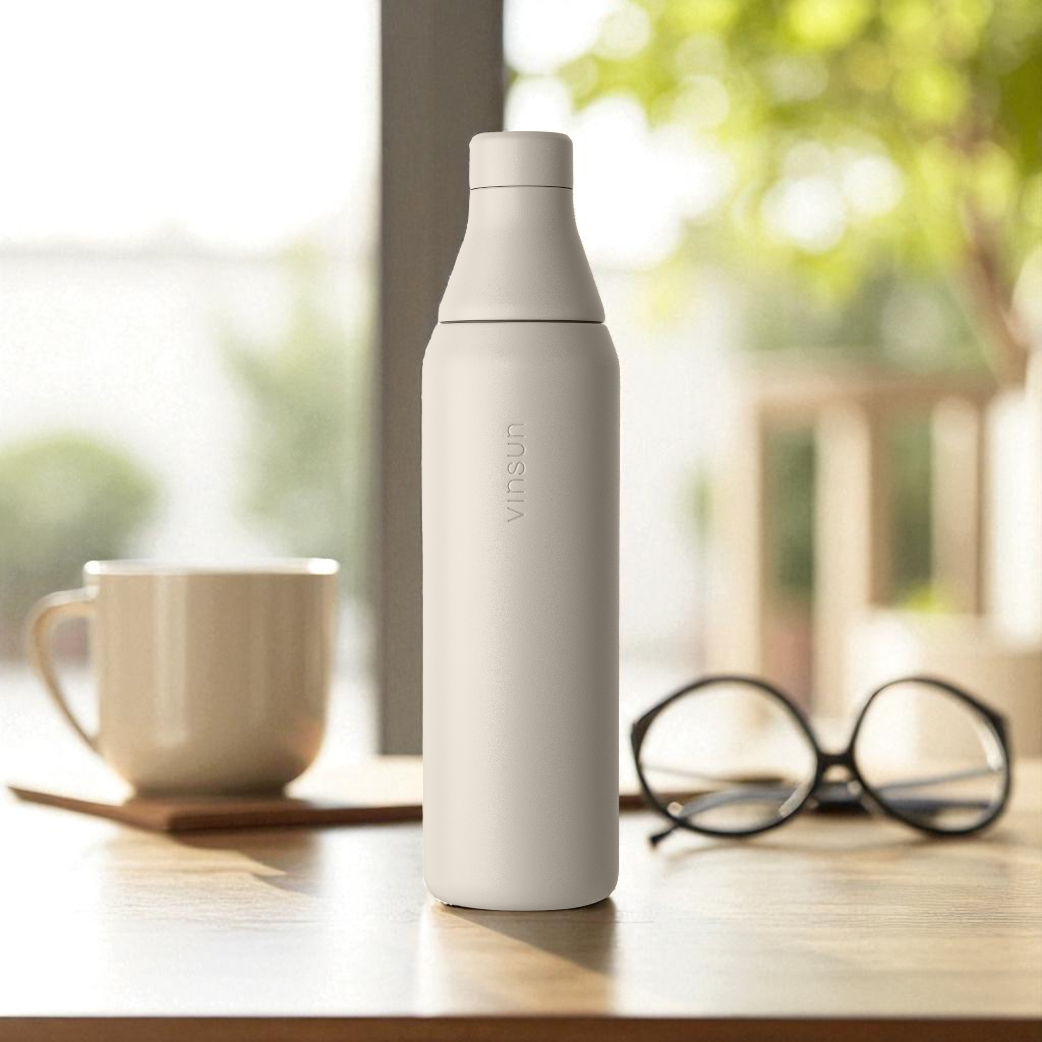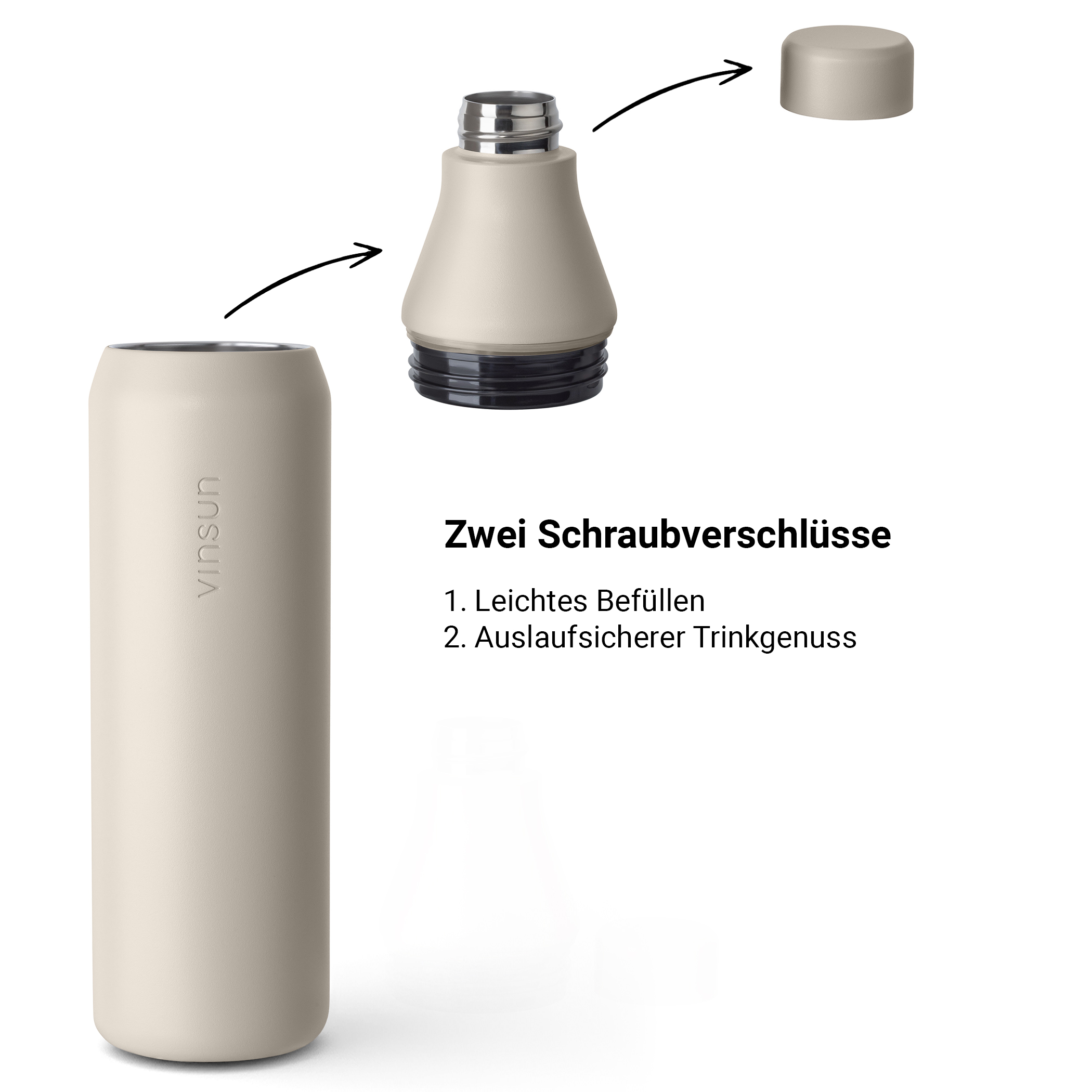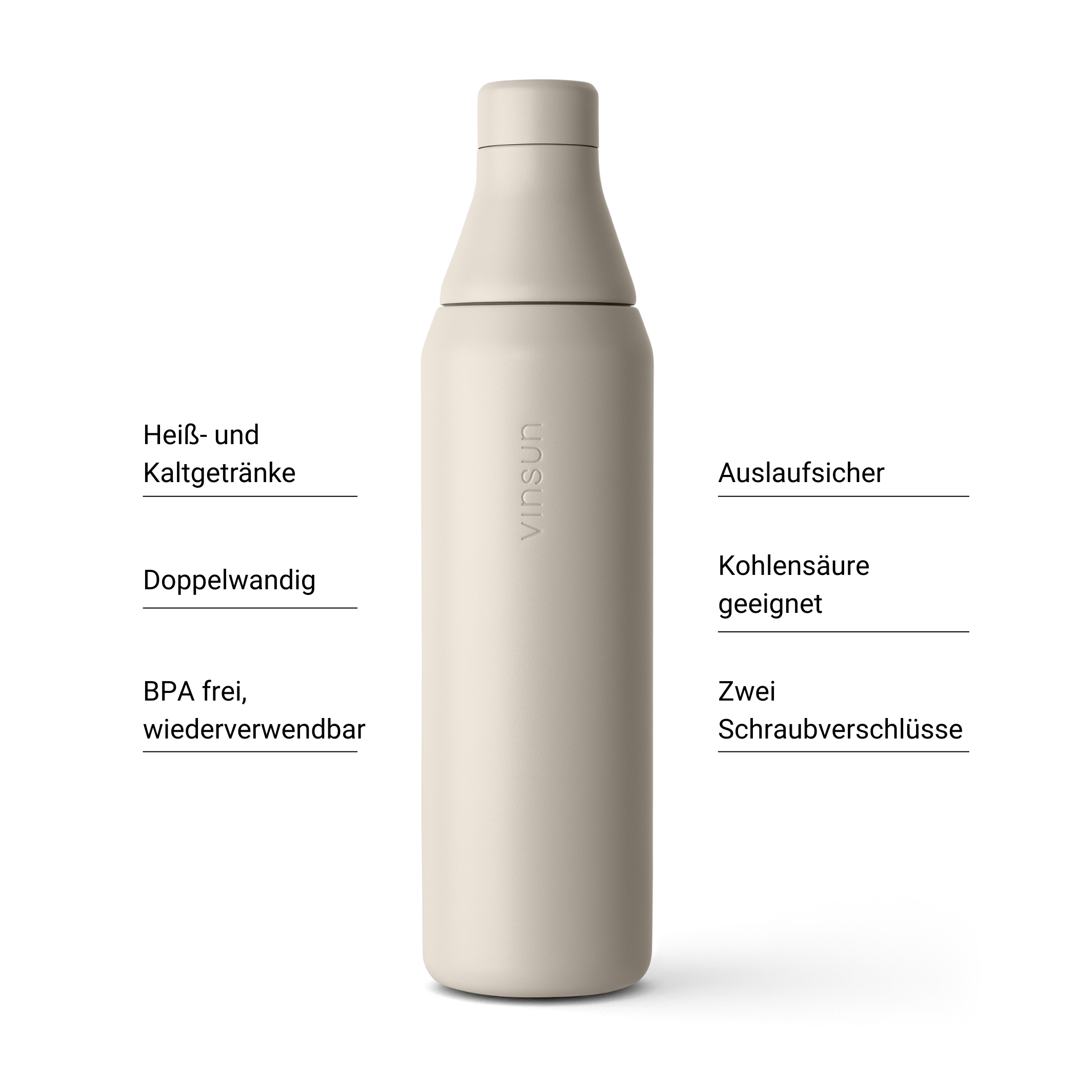 Enjoy your drink in a modern, minimalist design with the stylish insulated bottle from Vinsun.