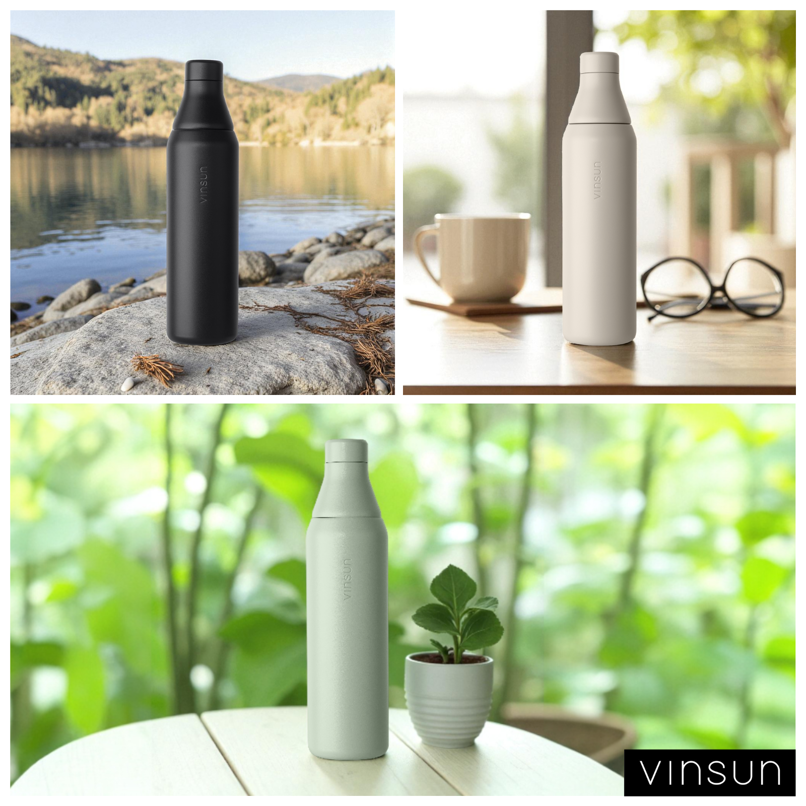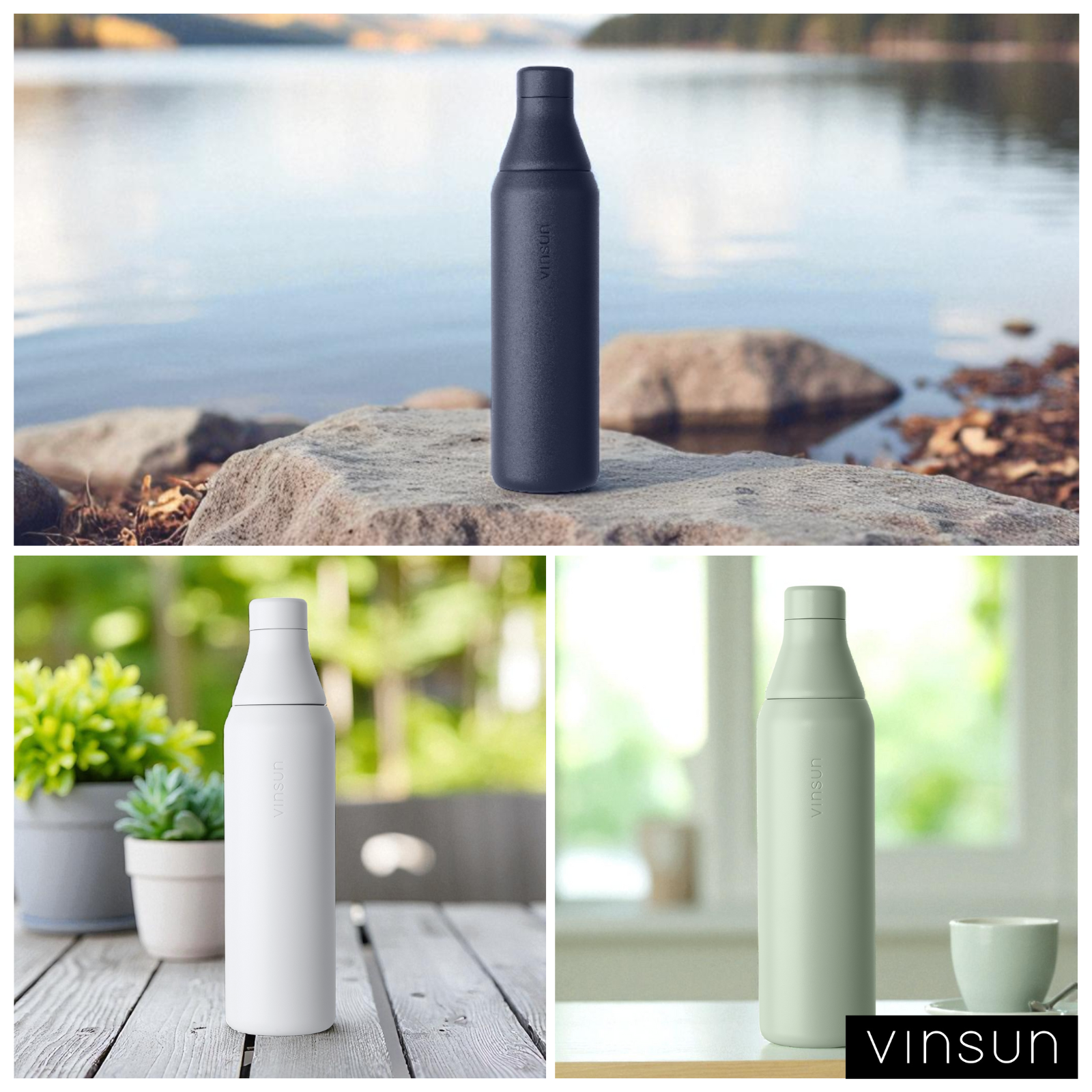 Enjoy your drink in a modern, minimalist design with the stylish insulated bottle from Vinsun.