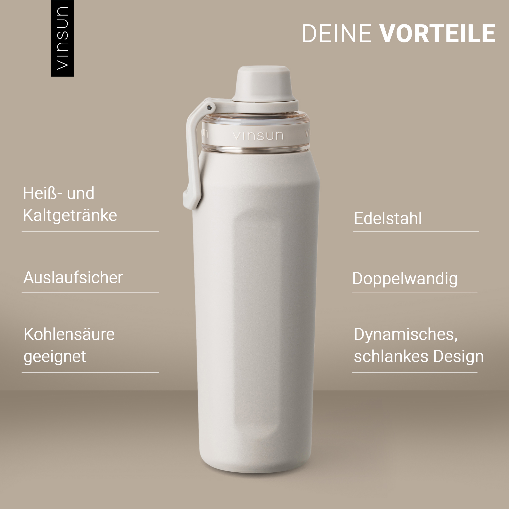 The 750ml stainless steel drinking bottle combines everyday practicality with a modern, dynamic design. As a double-walled, insulated and lightweight water bottle, it accompanies you to the office, school, university or the gym, replacing disposable bottles with a durable, reusable solution.