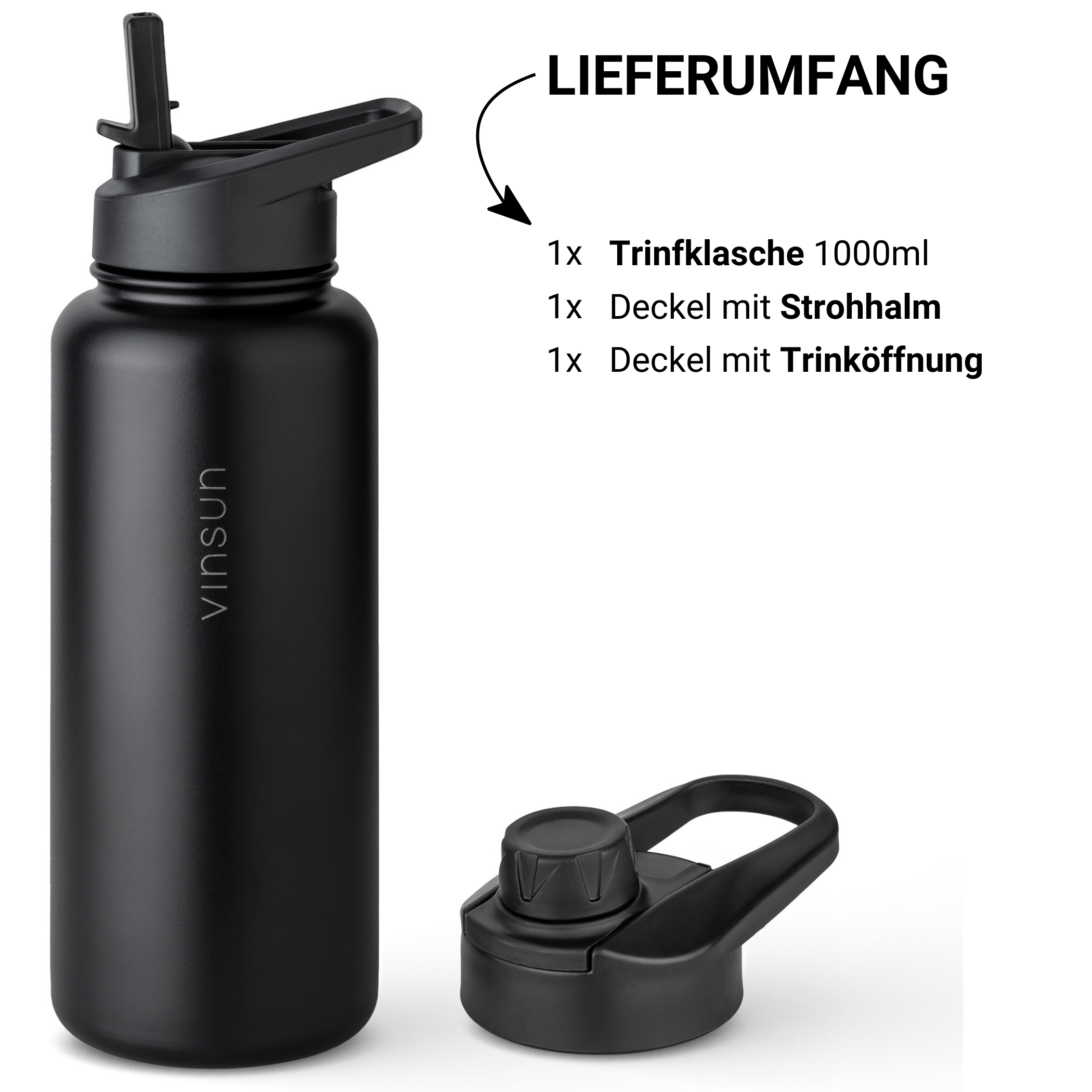 The thermal bottle comes with two leak proof lids to suit your individual preferences. The first lid has a generous drinking opening. Perfect for a quick sip during training. The second lid has a flip-up straw to give you extra convenience on the go.