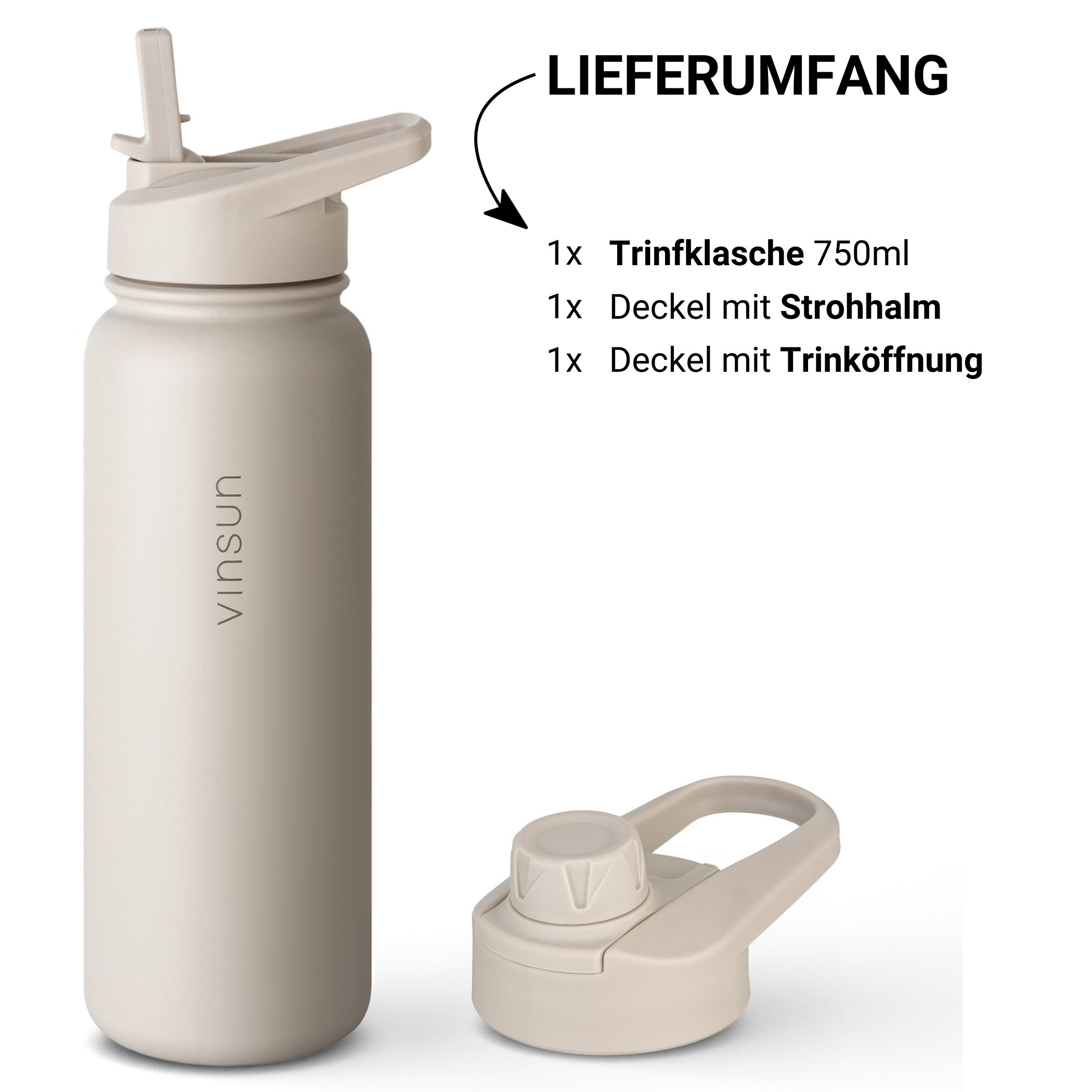 The thermal bottle comes with two leak proof lids to suit your individual preferences. The first lid has a generous drinking opening. Perfect for a quick sip during training. The second lid has a flip-up straw to give you extra convenience on the go.