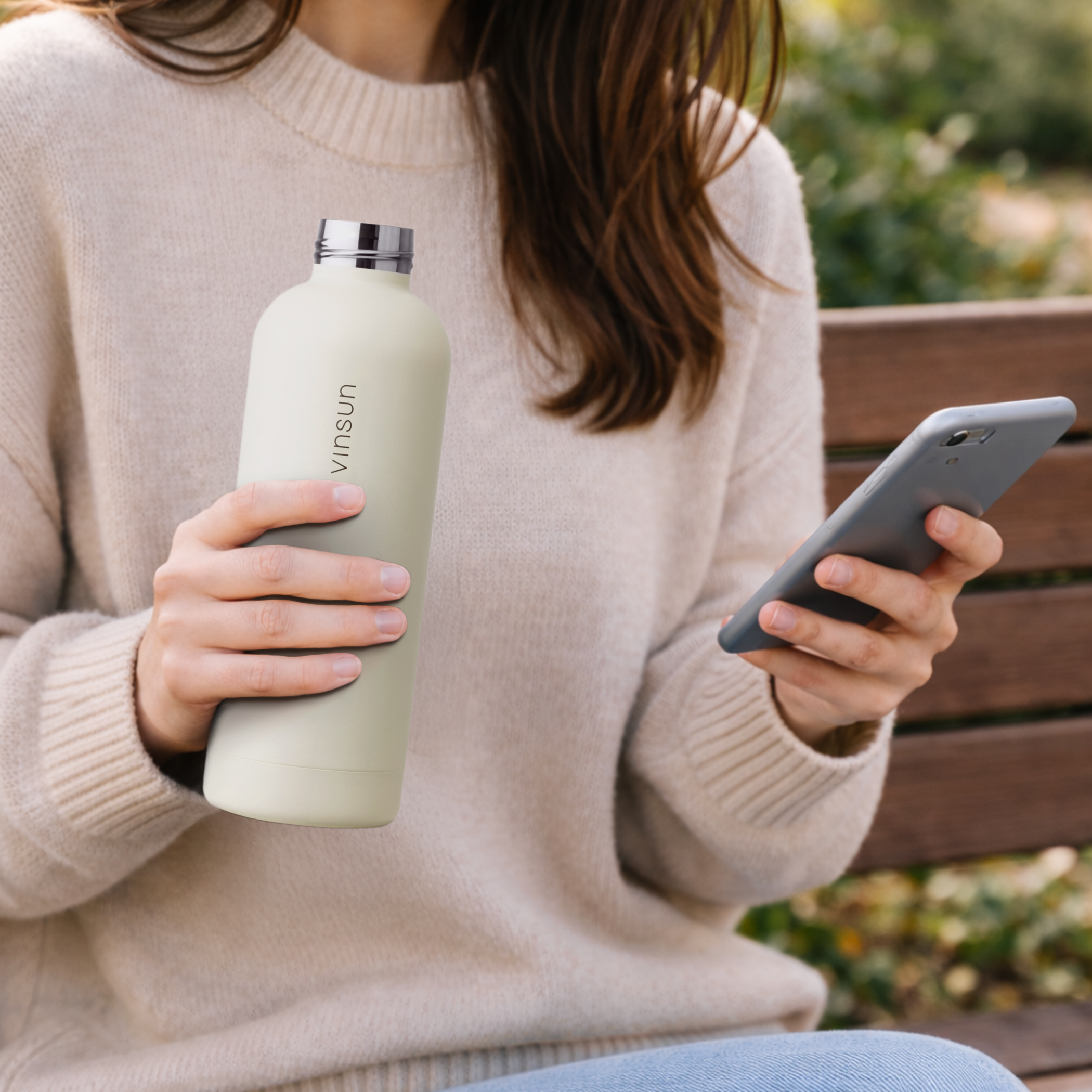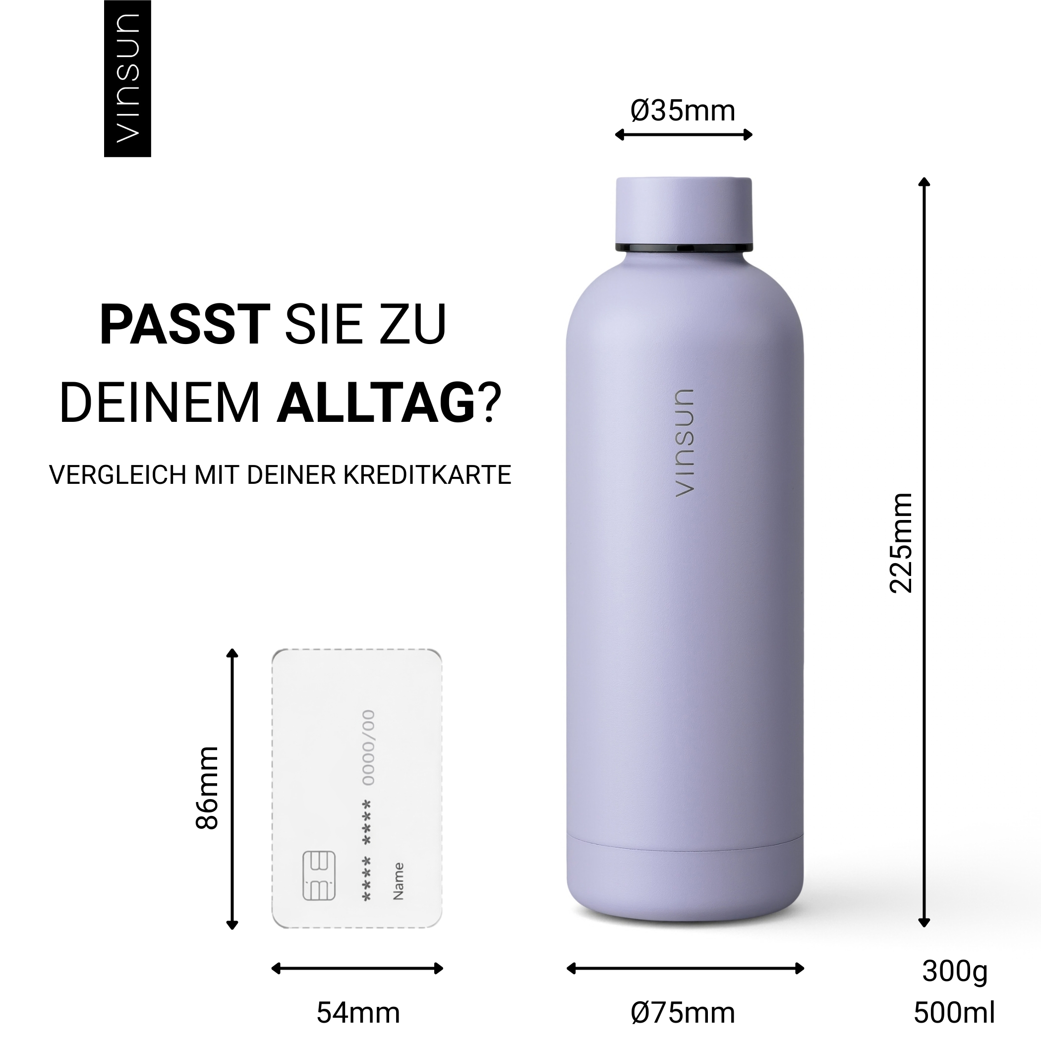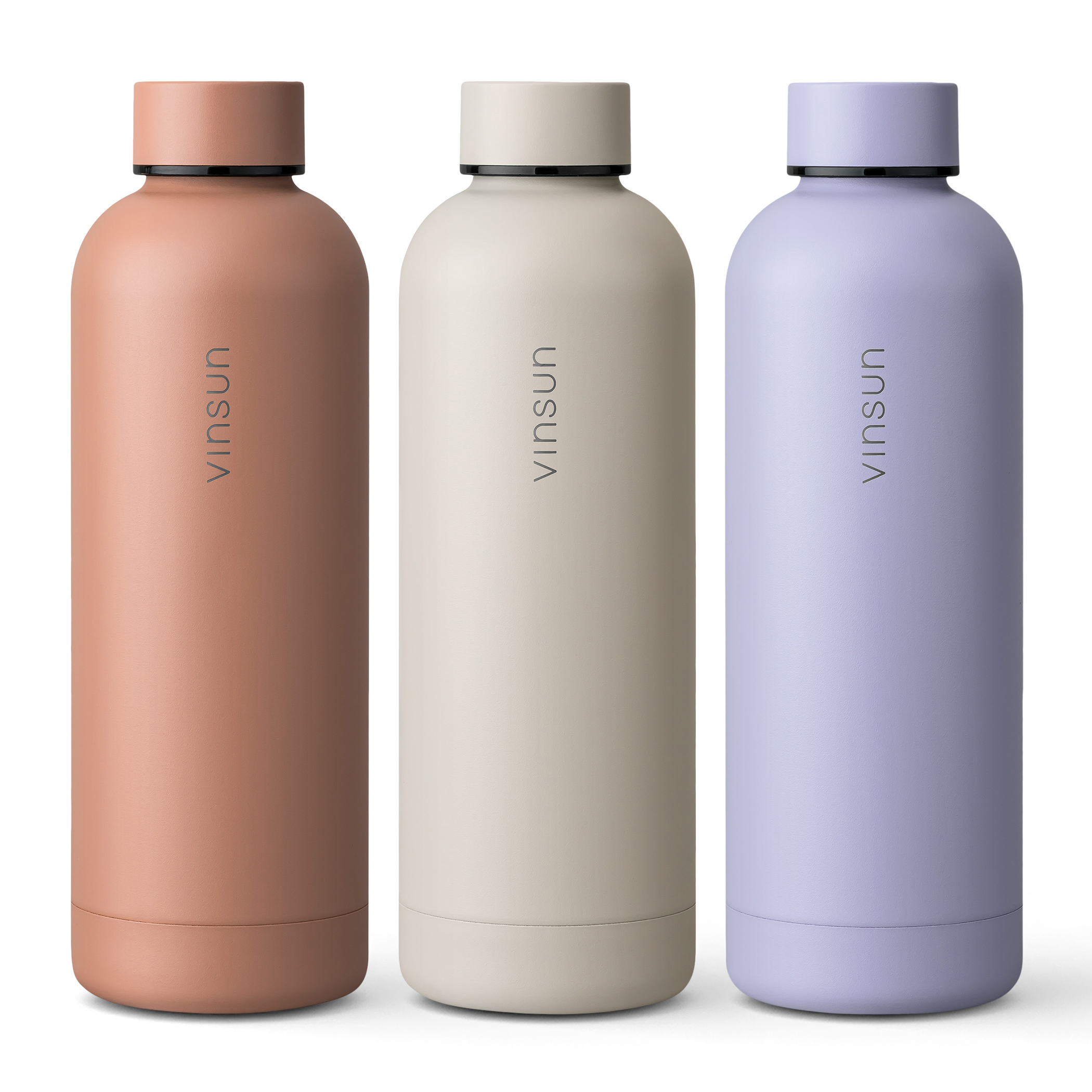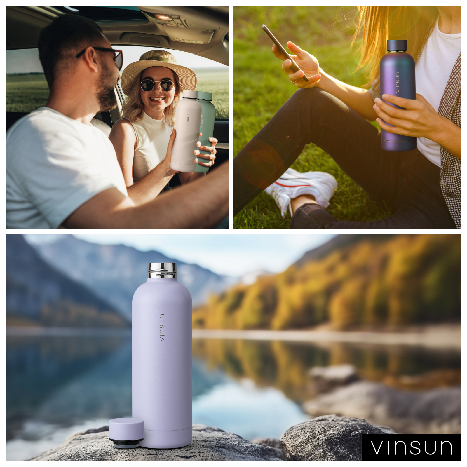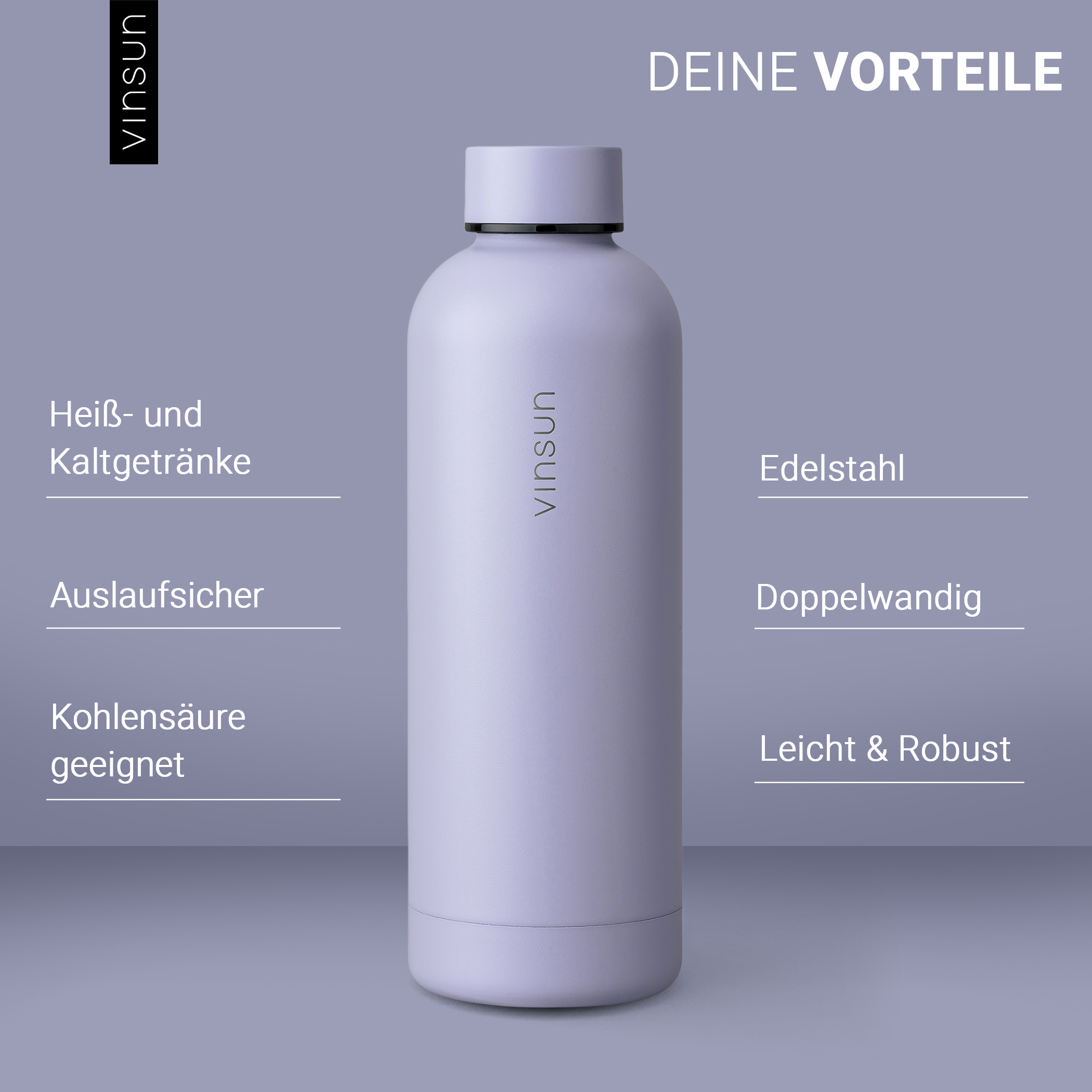 Reusable and robust drinking bottles ideal for sparkling water, soft drinks, tea or coffee, whether hot or cold. Enjoy your drink in a modern, minimalist design with the stylish thermal bottle by Vinsun. With this reusable stainless steel drinking bottle you are optimally equipped for every occasion - sports, school, university, bicycle, leisure - A perfect companion!