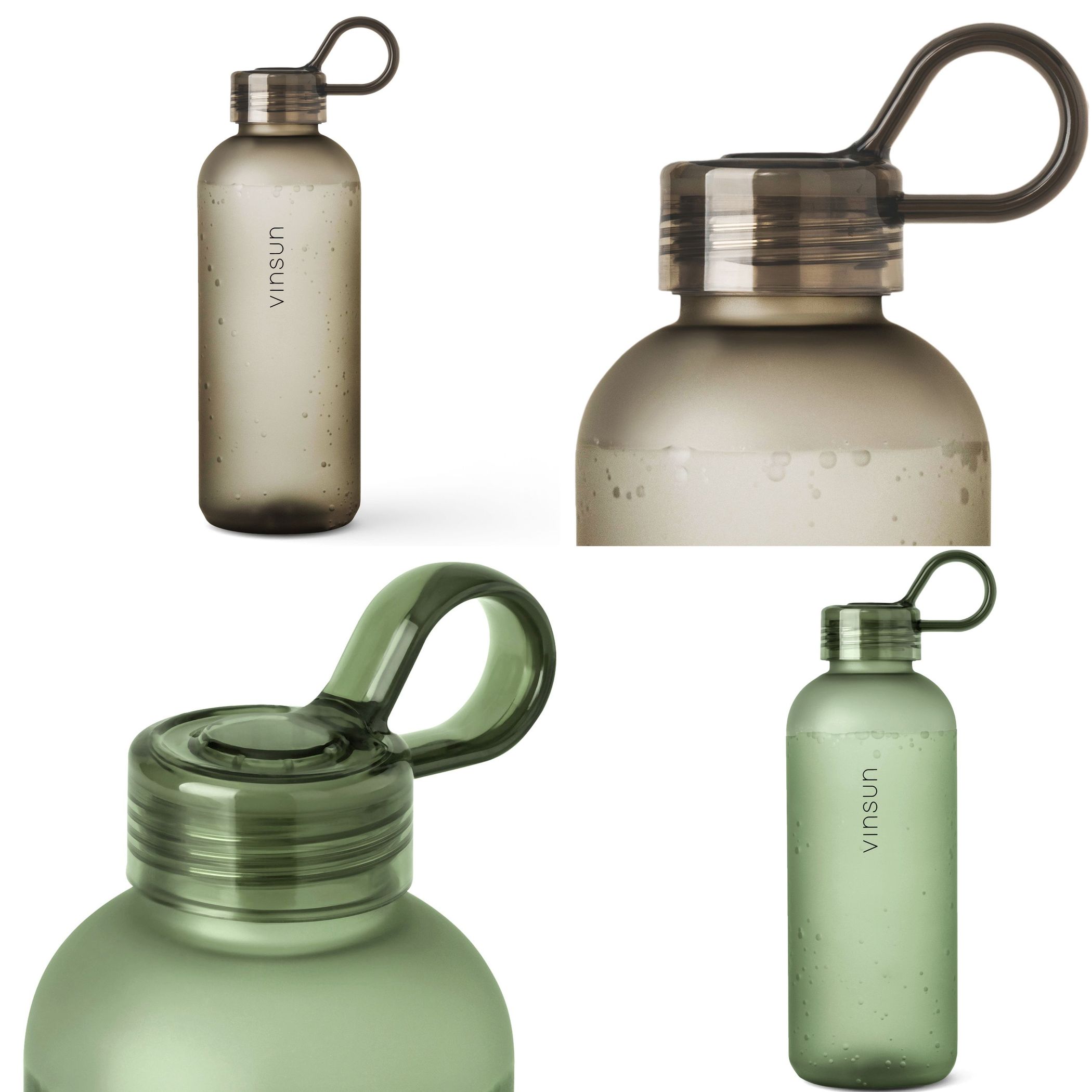 Our drinking bottles have a slightly velvety, transparent surface. The lightness of the Tritan bottle avoids additional weight when travelling. The BPA-free plastic lids with screw cap have an integrated handle and give the minimalist, slim design a high level of practicality.