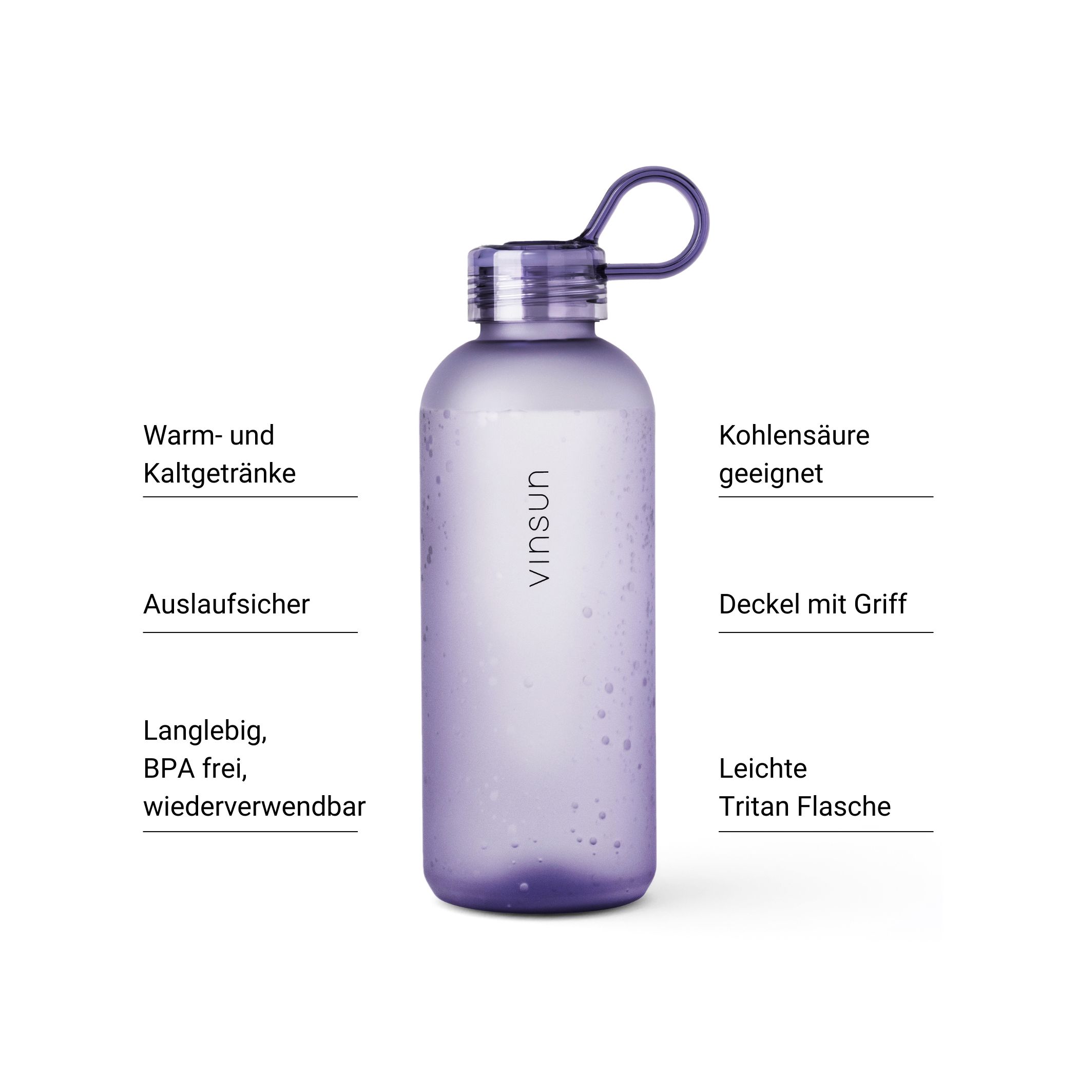 Vrsatile and practical drinking bottle made from BPA-free Tritan. Ideal for sparkling water, soft drinks or tea, whether hot or cold. Enjoy your drink in a modern, minimalist design with the drinking bottle from Vinsun. With this reusable drinking bottle made of Tritan, you are perfectly equipped for every occasion - sport, school, university, cycling, leisure - a perfect companion!