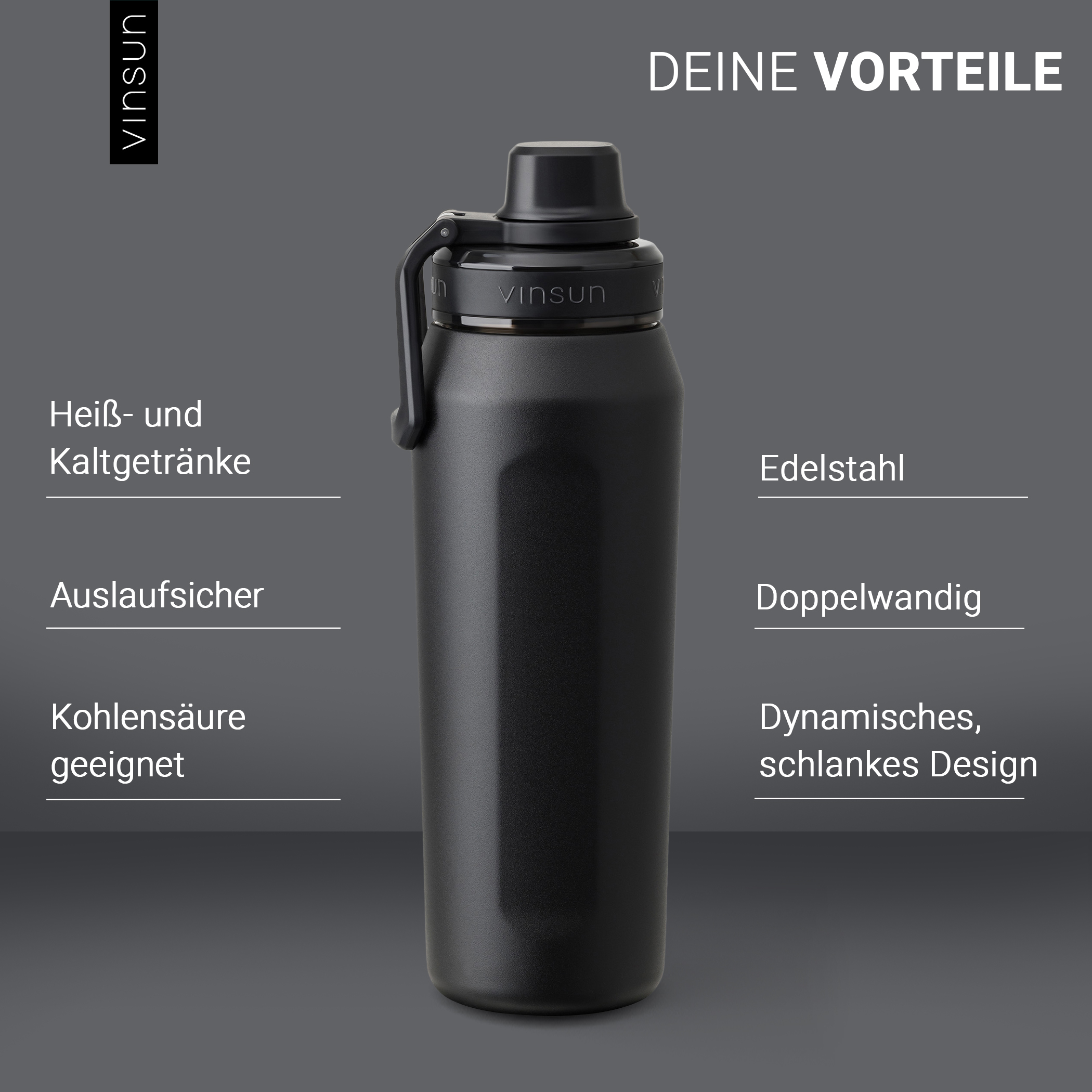 The 750ml stainless steel drinking bottle combines everyday practicality with a modern, dynamic design. As a double-walled, insulated and lightweight water bottle, it accompanies you to the office, school, university or the gym, replacing disposable bottles with a durable, reusable solution.