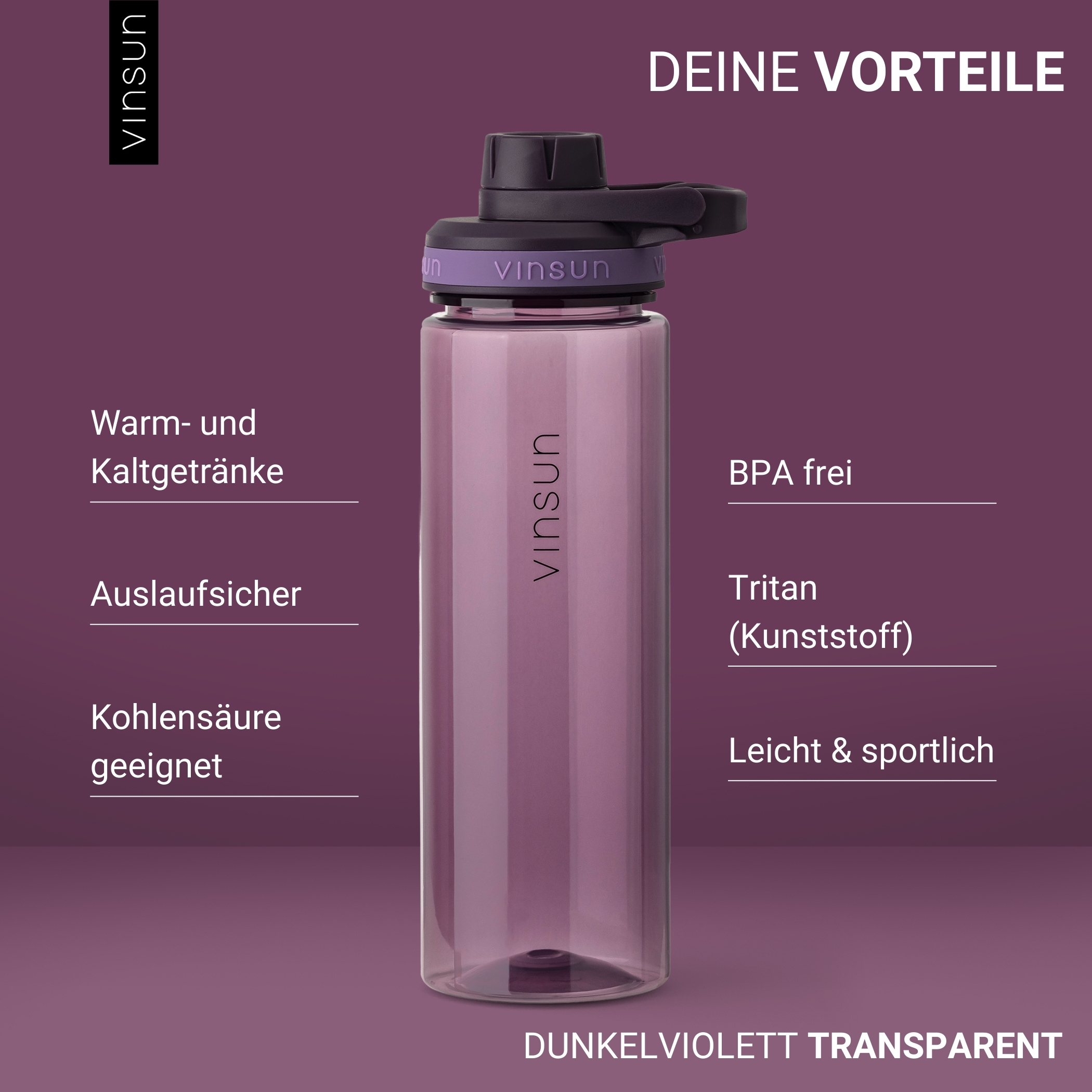 Tritan (BPA-free), dark violet, practical drinking opening