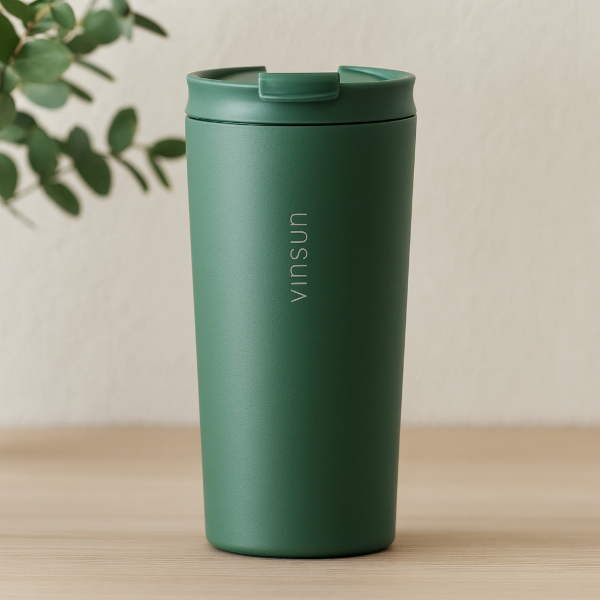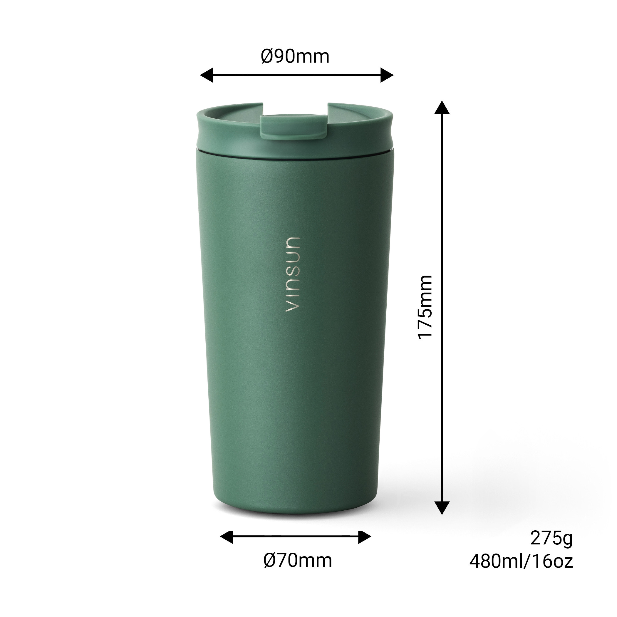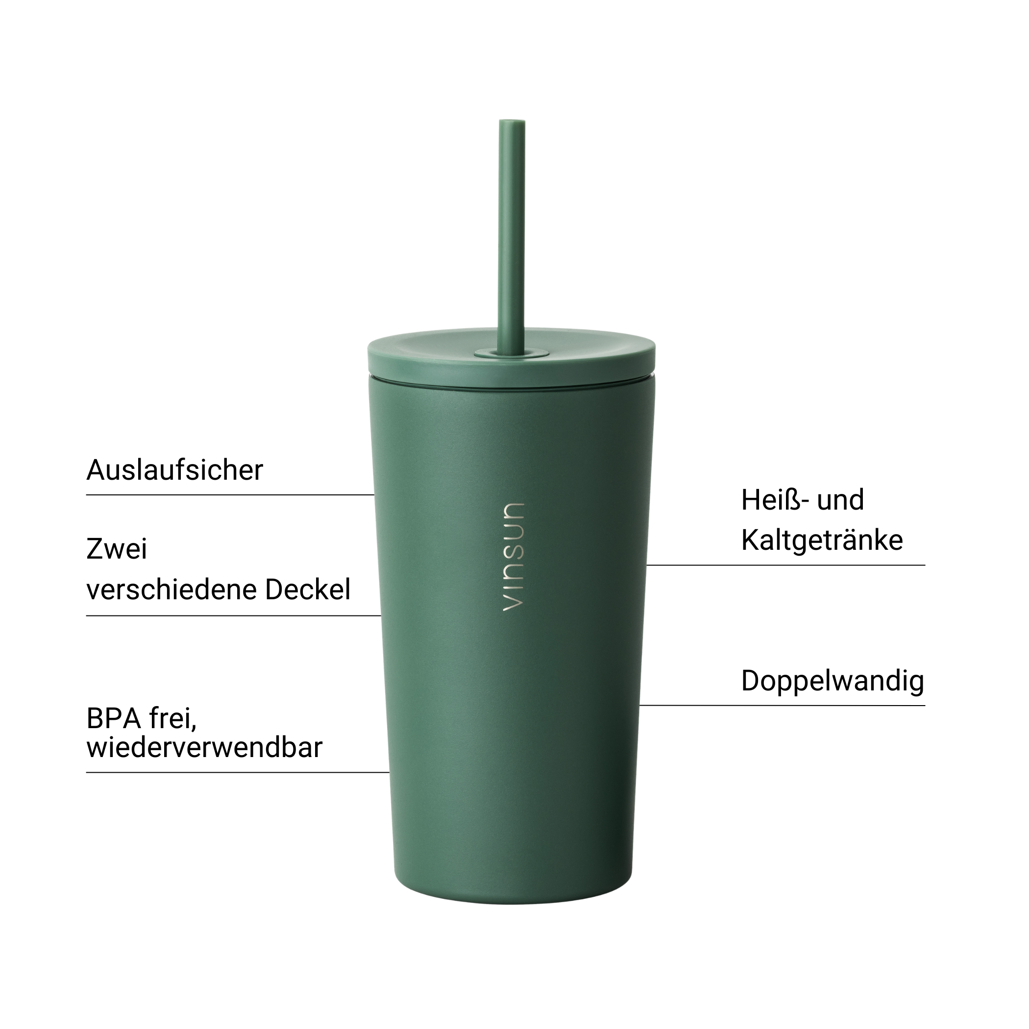 The thermo mug from Vinsun is the perfect solution for anyone who does not want to miss out on their hot or cold drinks when travelling. With a capacity of 480ml and two different lids, a classic lid with drinking opening and a straw lid, this stainless steel mug offers maximum flexibility and convenience.