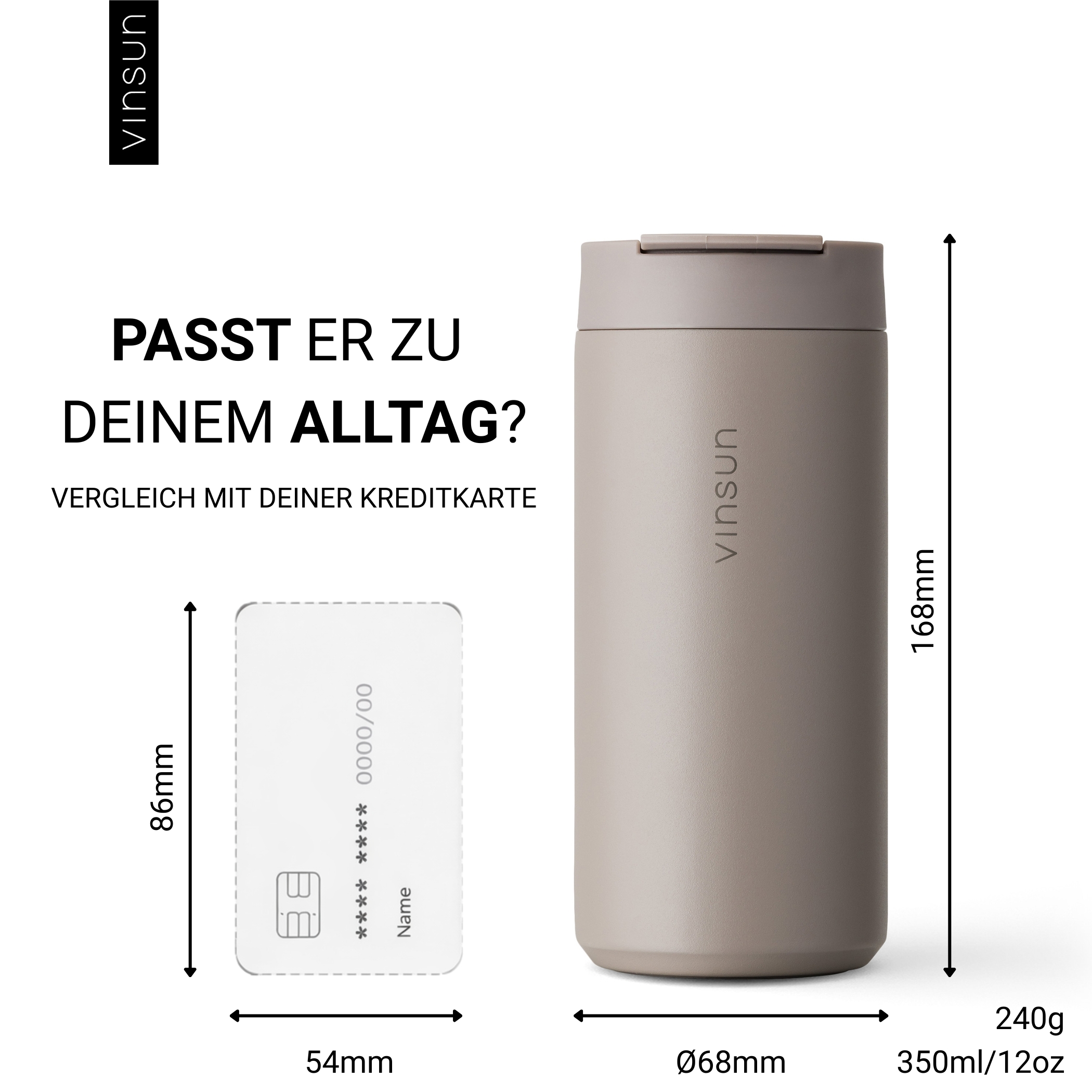 Environmentally friendly and sustainable drinking mug ideal for coffee or tea, whether hot or cold. Enjoy your drink in a modern, dynamic design with the thermo mug by Vinsun. With this reusable stainless steel thermo mug, you are optimally equipped for any occasion - travel, university, work, leisure - A perfect companion!