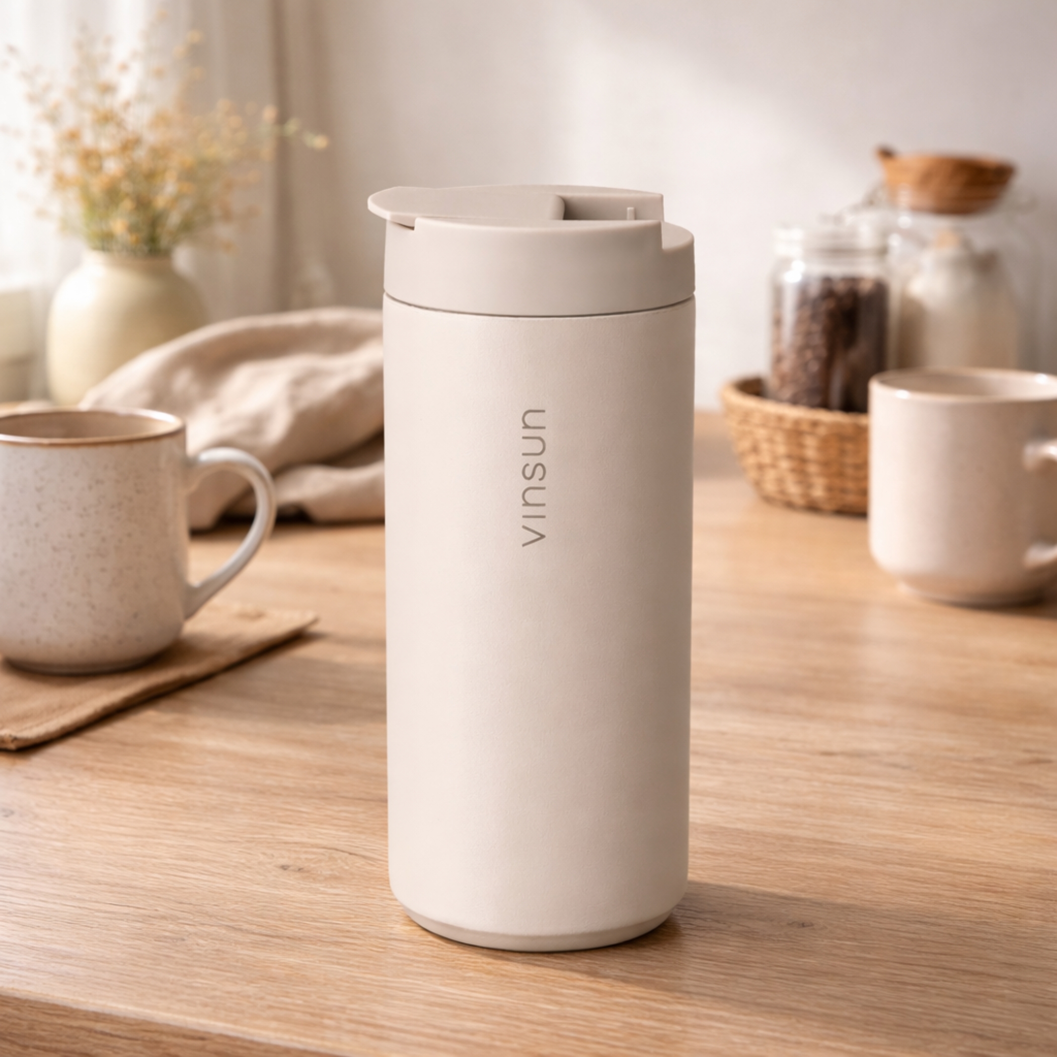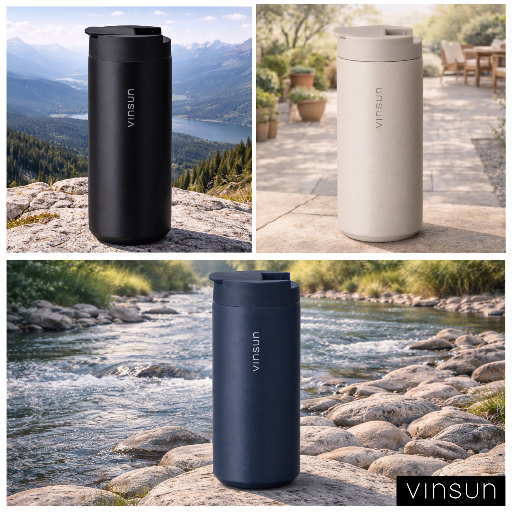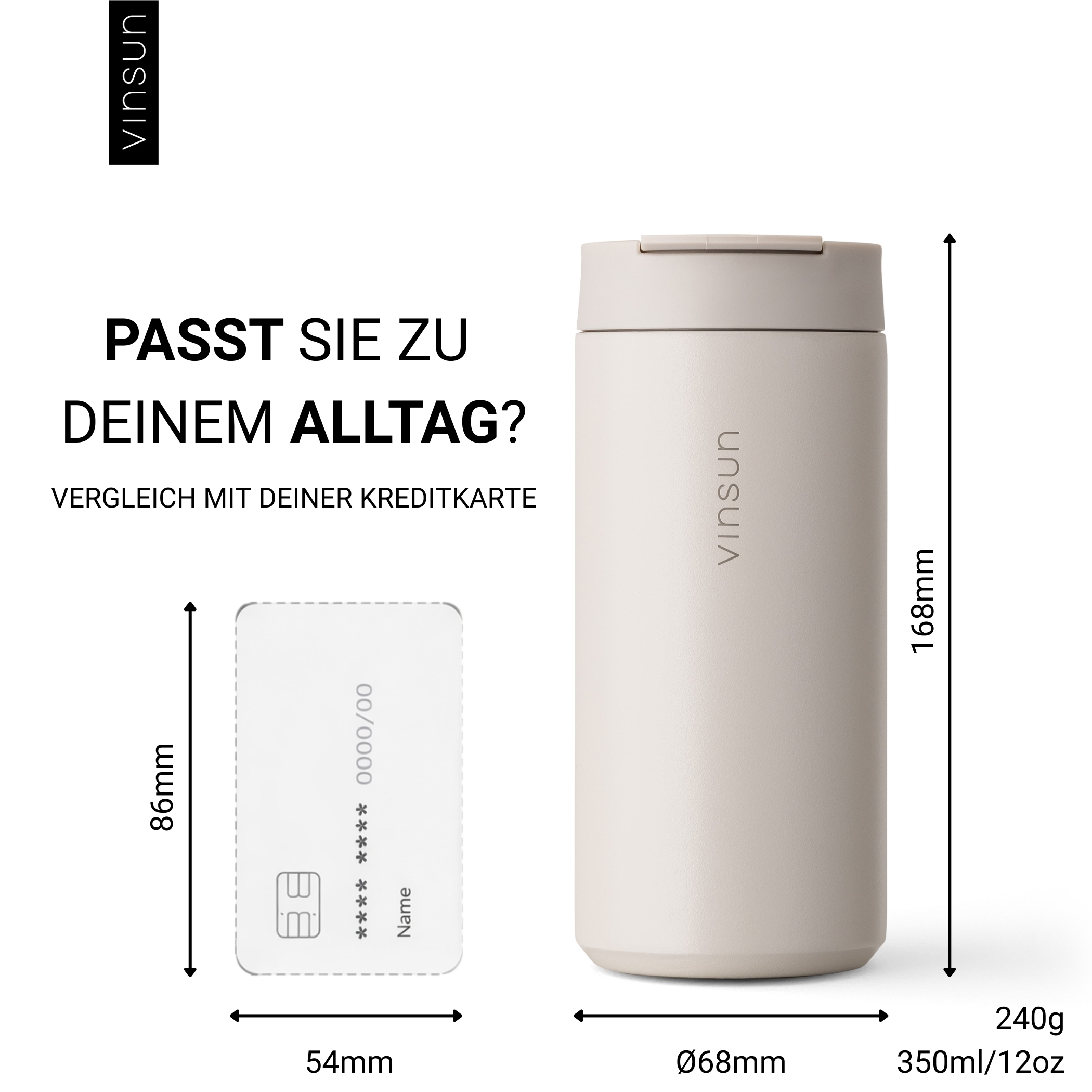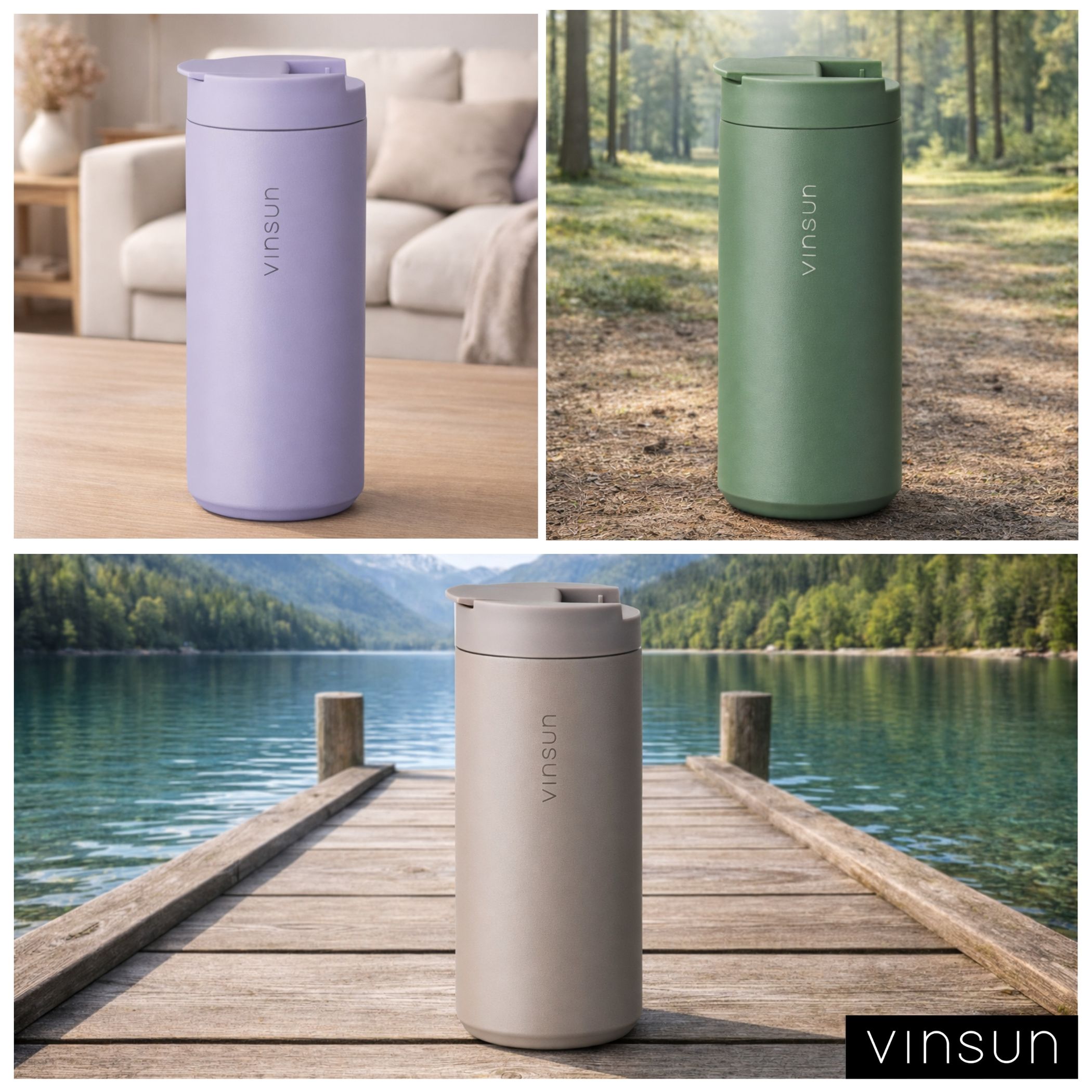 Environmentally friendly and sustainable drinking mug ideal for coffee or tea, whether hot or cold. Enjoy your drink in a modern, dynamic design with the thermo mug by Vinsun. With this reusable stainless steel thermo mug, you are optimally equipped for any occasion - travel, university, work, leisure - A perfect companion!