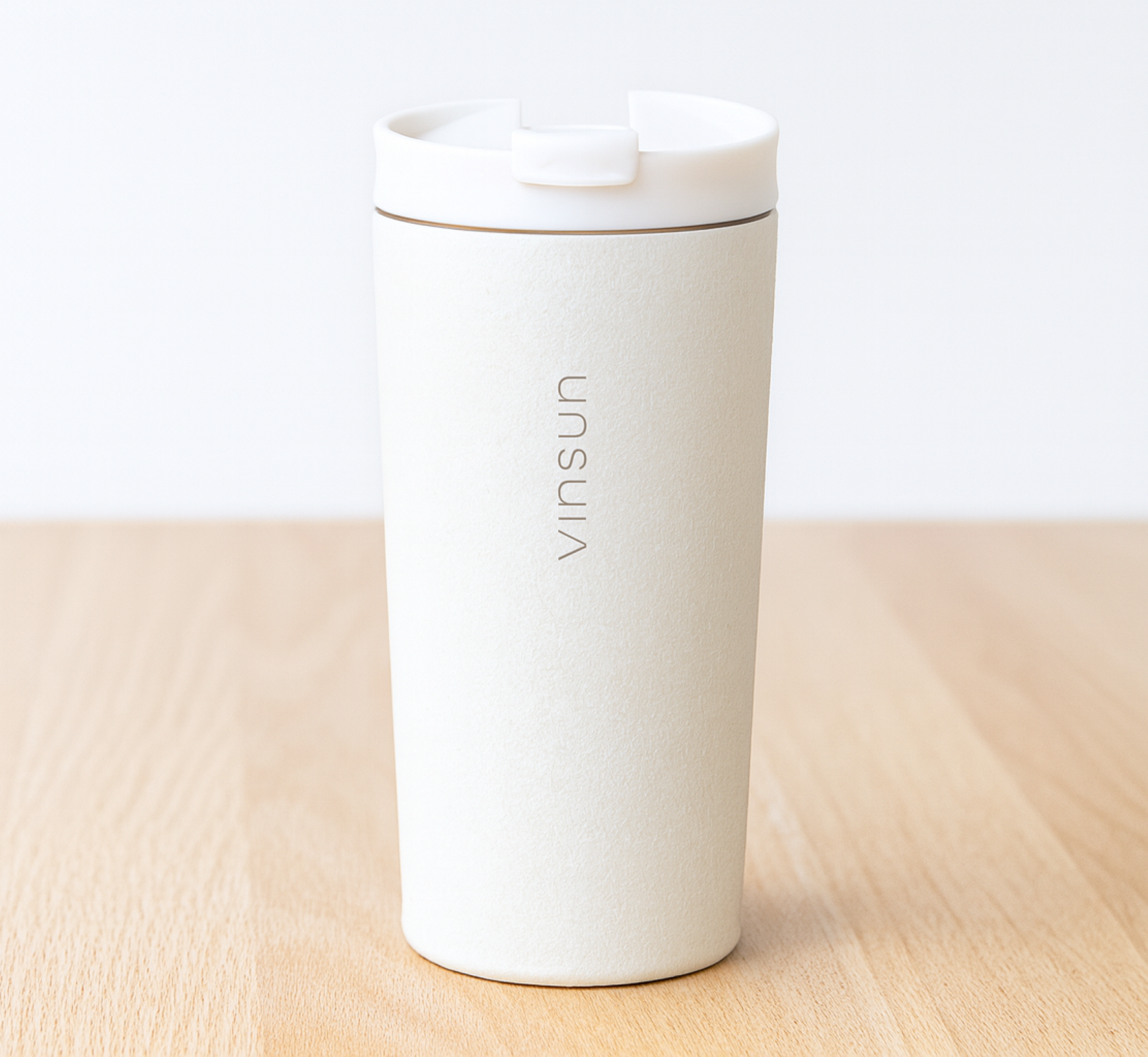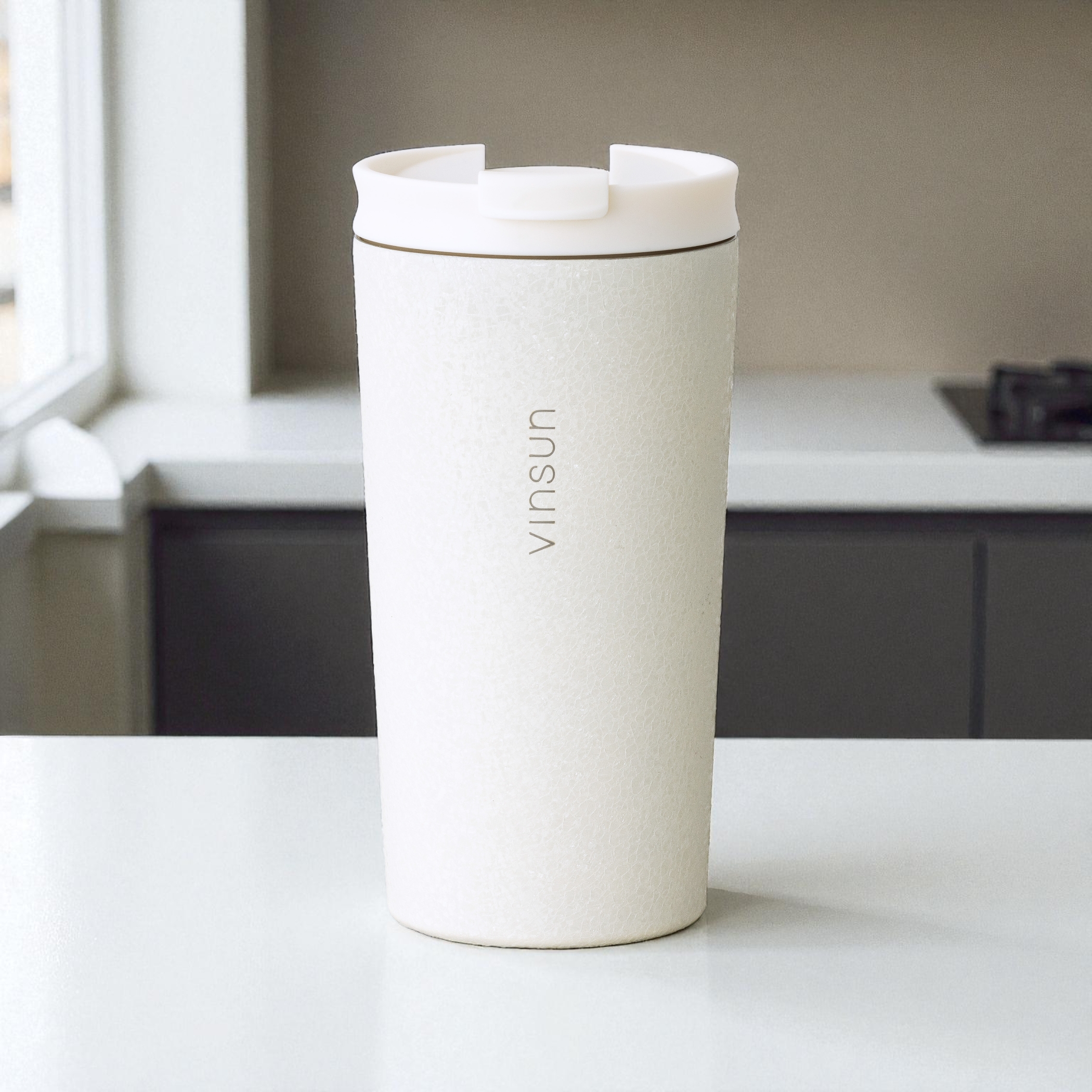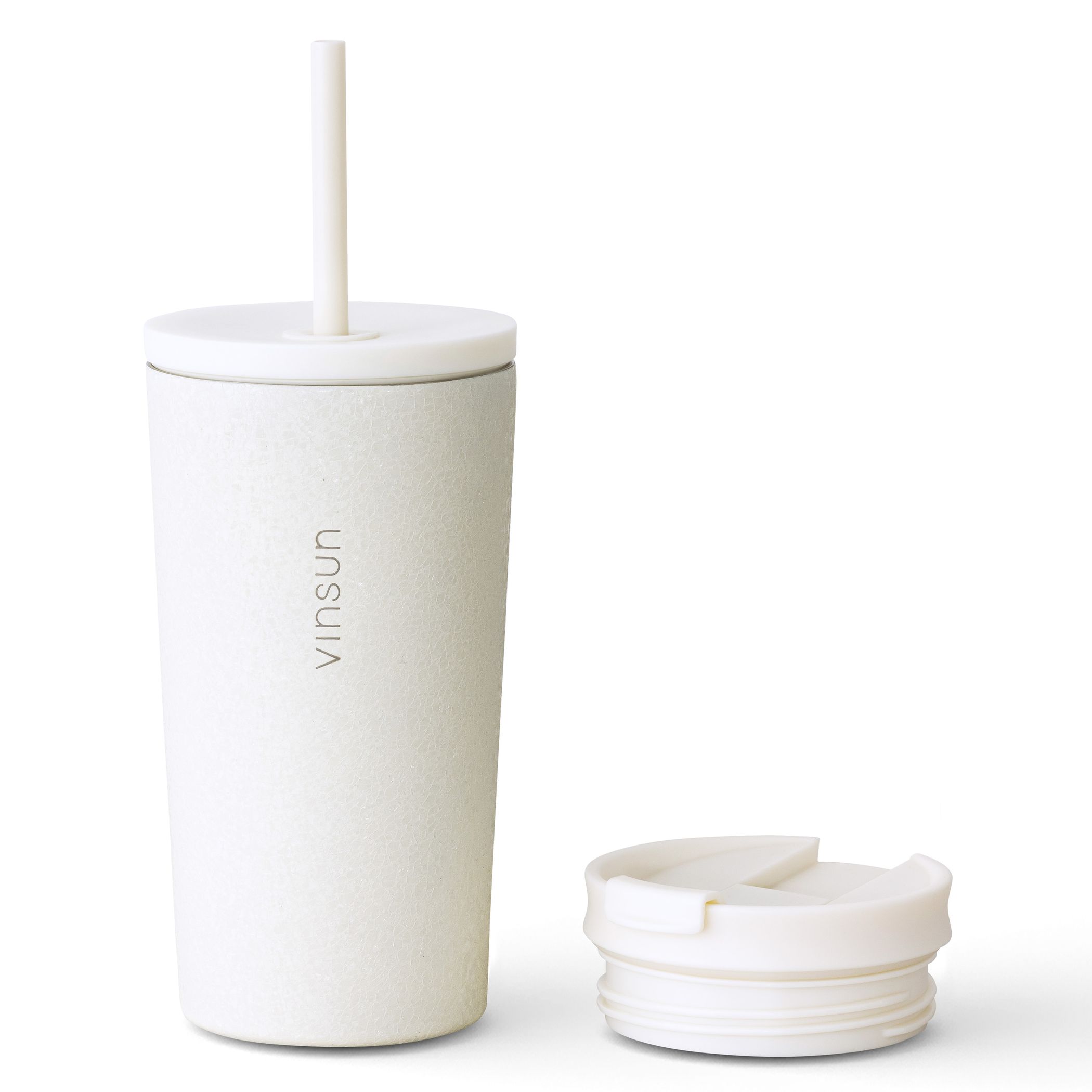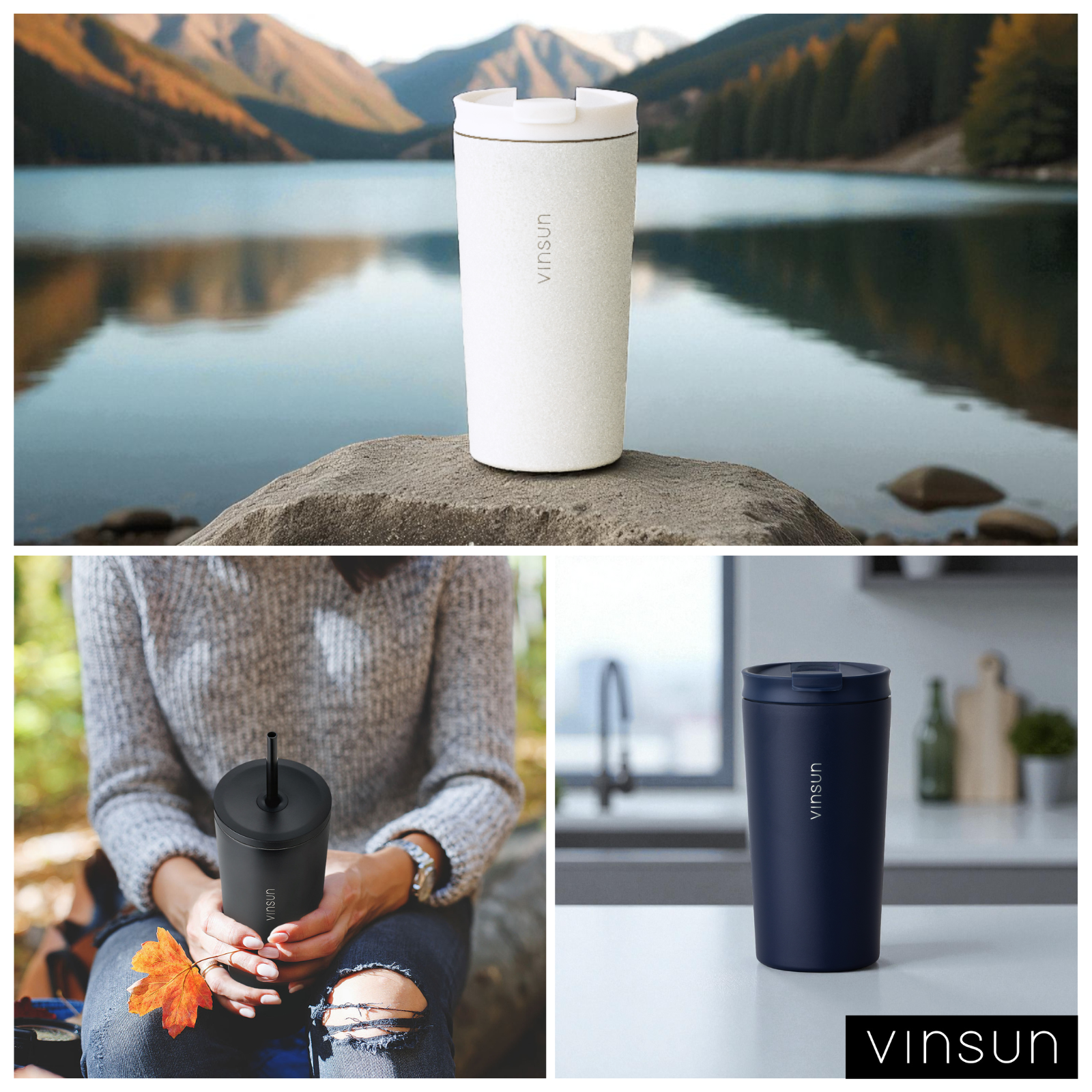 The thermo mug from Vinsun is the perfect solution for anyone who does not want to miss out on their hot or cold drinks when travelling. With a capacity of 480ml and two different lids, a classic lid with drinking opening and a straw lid, this stainless steel mug offers maximum flexibility and convenience.