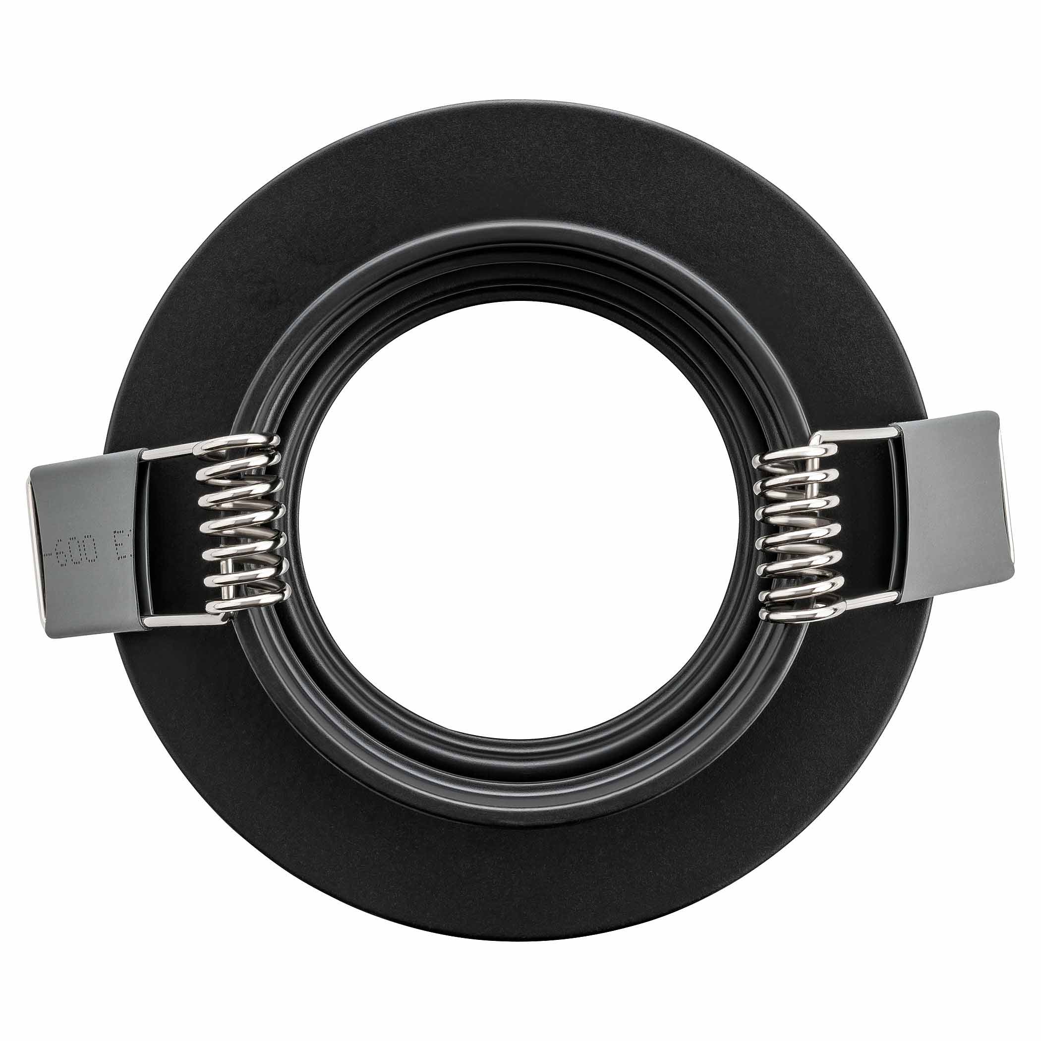 This ceiling downlight impresses with its simple shape. The black surface gives the downlight his special touch. The slightly tapered rosette with only 1 mm thickness at the outer edge is visually almost seamlessly into the ceiling surface. The great facet of the inner retaining ring seems simple and noble. It is easily attached and holds the lamp in the frame without unsightly snap ring (ring spring).
