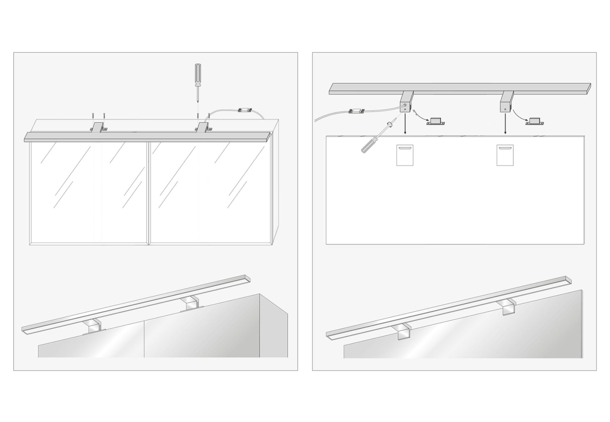 The mirror lamp can be easily mounted on a mirror cabinet or attached directly to the mirror as a top light - a clean, integrated solution for the bathroom. With an output of just 15W, the LED mirror light is particularly energy-efficient with a long service life.