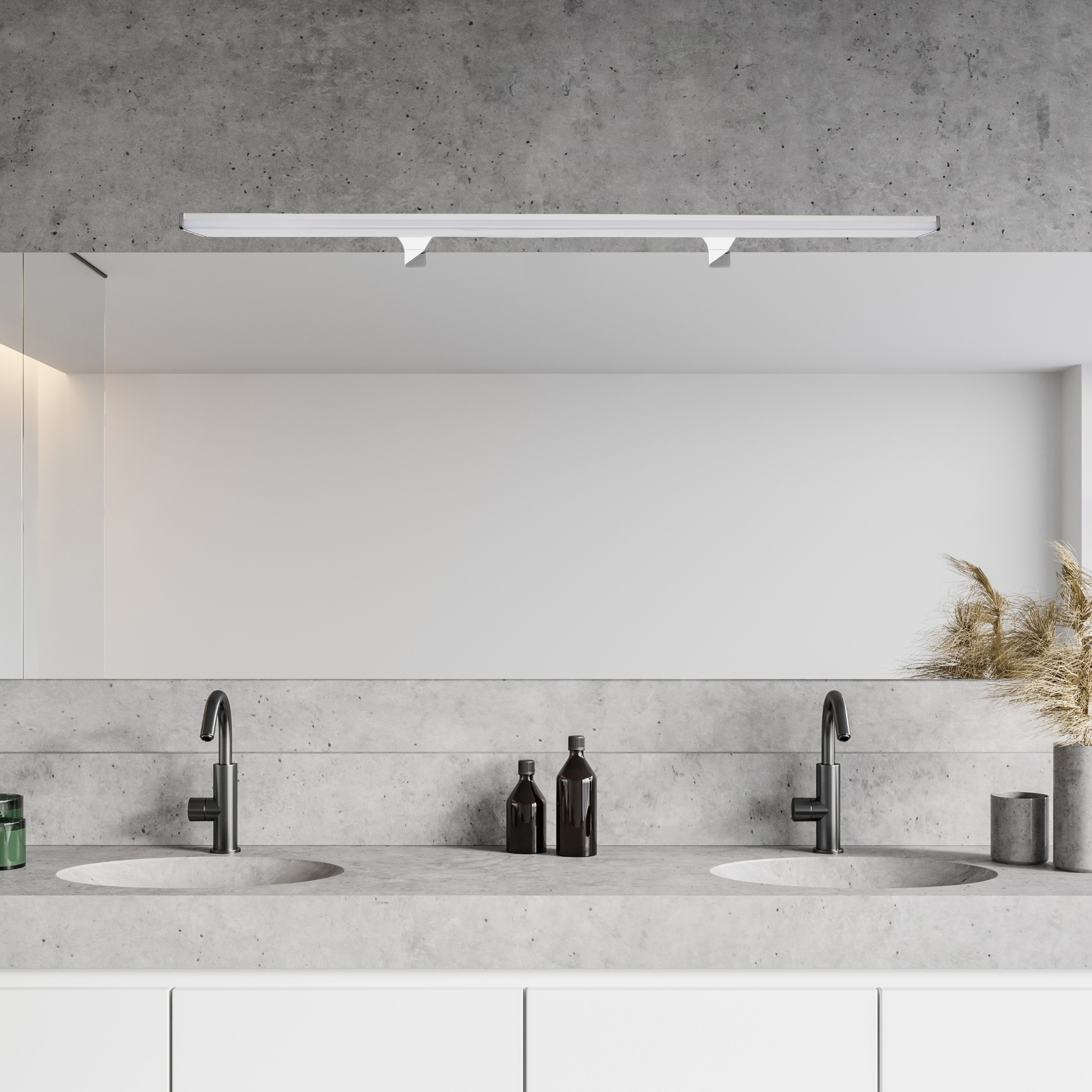 This modern LED mirror light is specially designed for mounting directly on the mirror or on the mirror cabinet. With a length of 120cm, the light is ideal for classic mirrors in the bathroom. The linear shape blends discreetly and stylishly into modern and functional bathrooms.