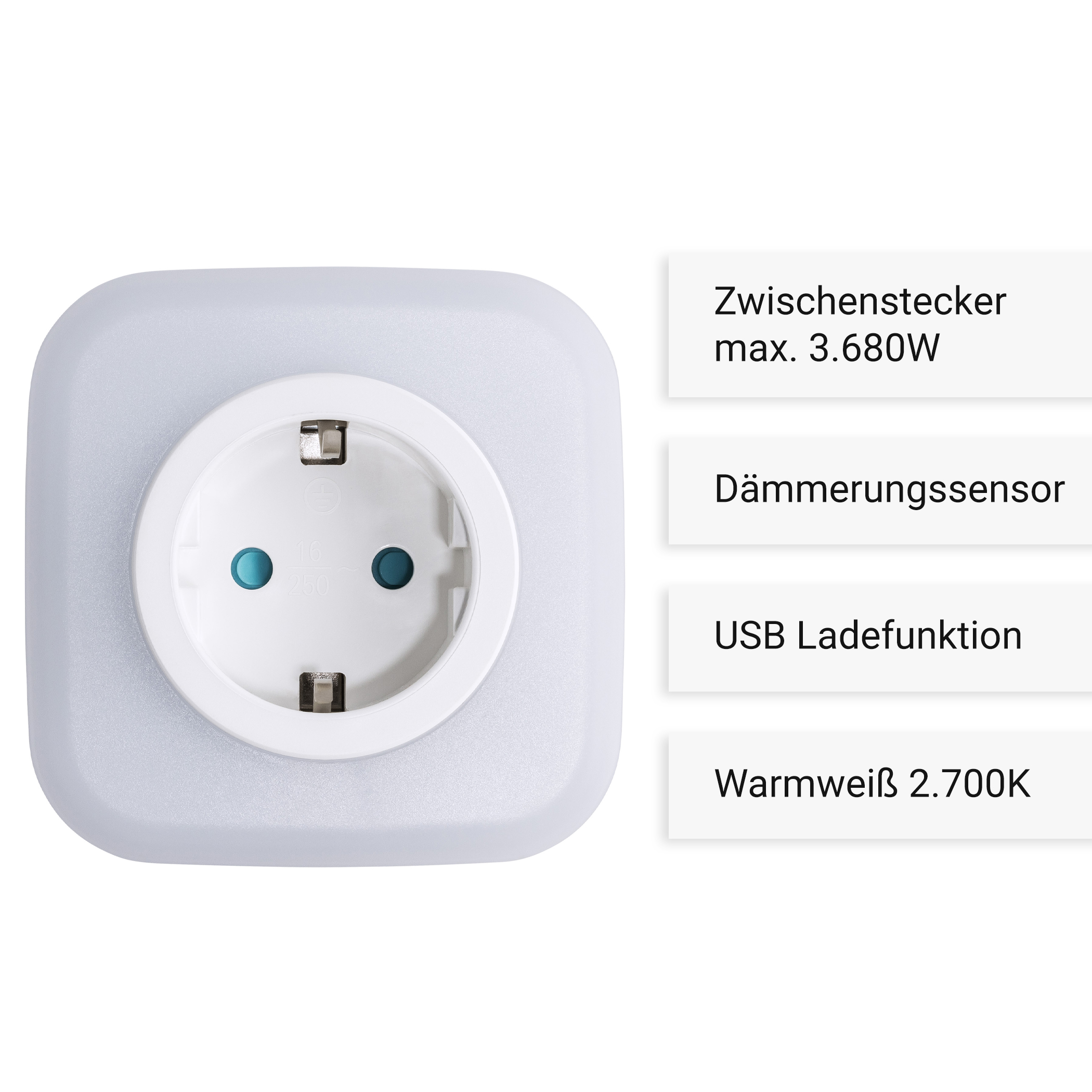 LED night light with power outlet – warm white, twilight sensor & charging function