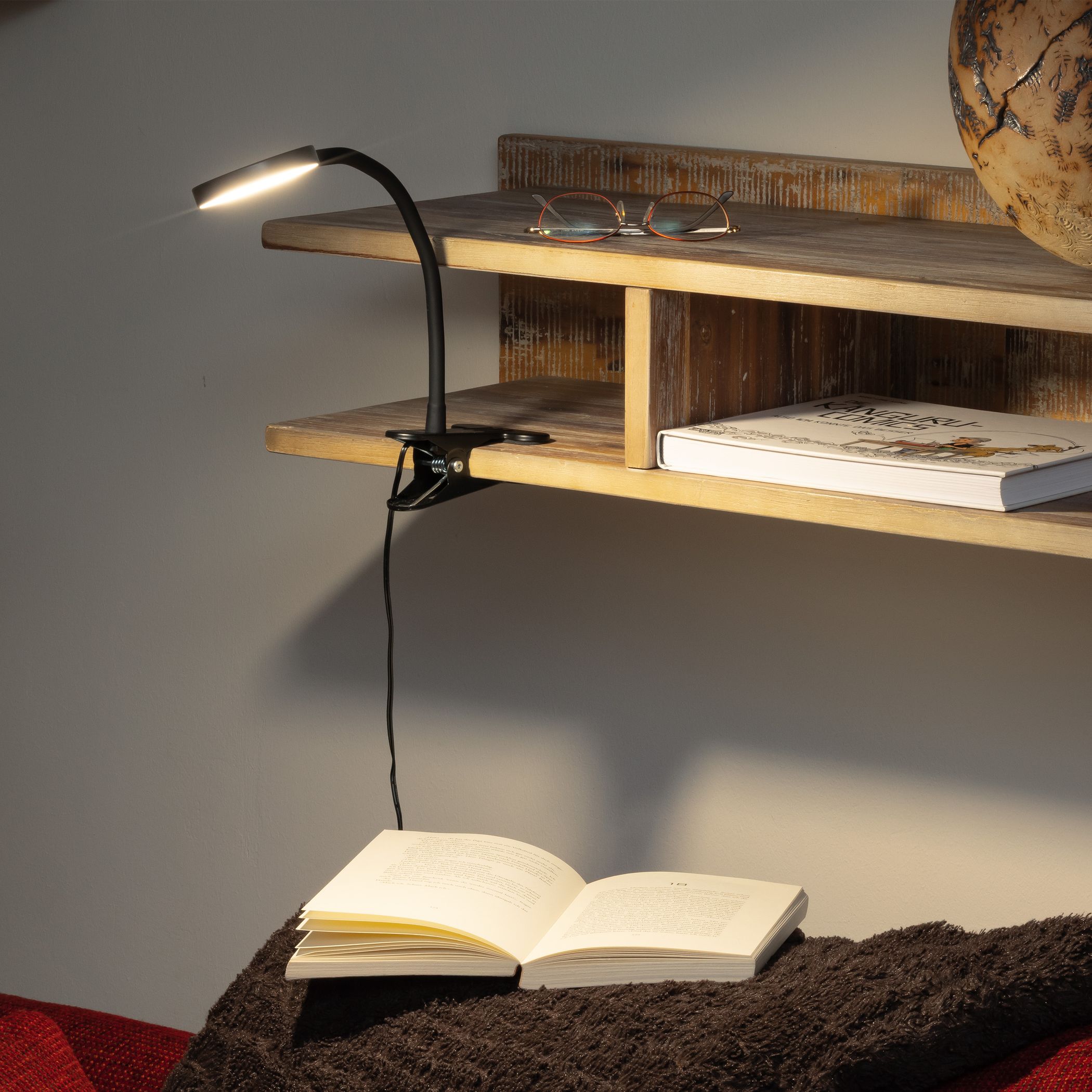 Wer nach einer Alternative zu klassischen Tischlampen sucht, findet in dieser schlanken Klemmleuchte eine platzsparende Lösung, die sich unauffällig in viele Wohn- und Arbeitsbereiche einfügt – vom Bett über den Schreibtisch bis hin zum Kinderzimmer. So lässt sich die Lampe je nach Bedarf als Schreibtischlampe, Nachtischlampe oder kleine LED Leselampe nutzen.