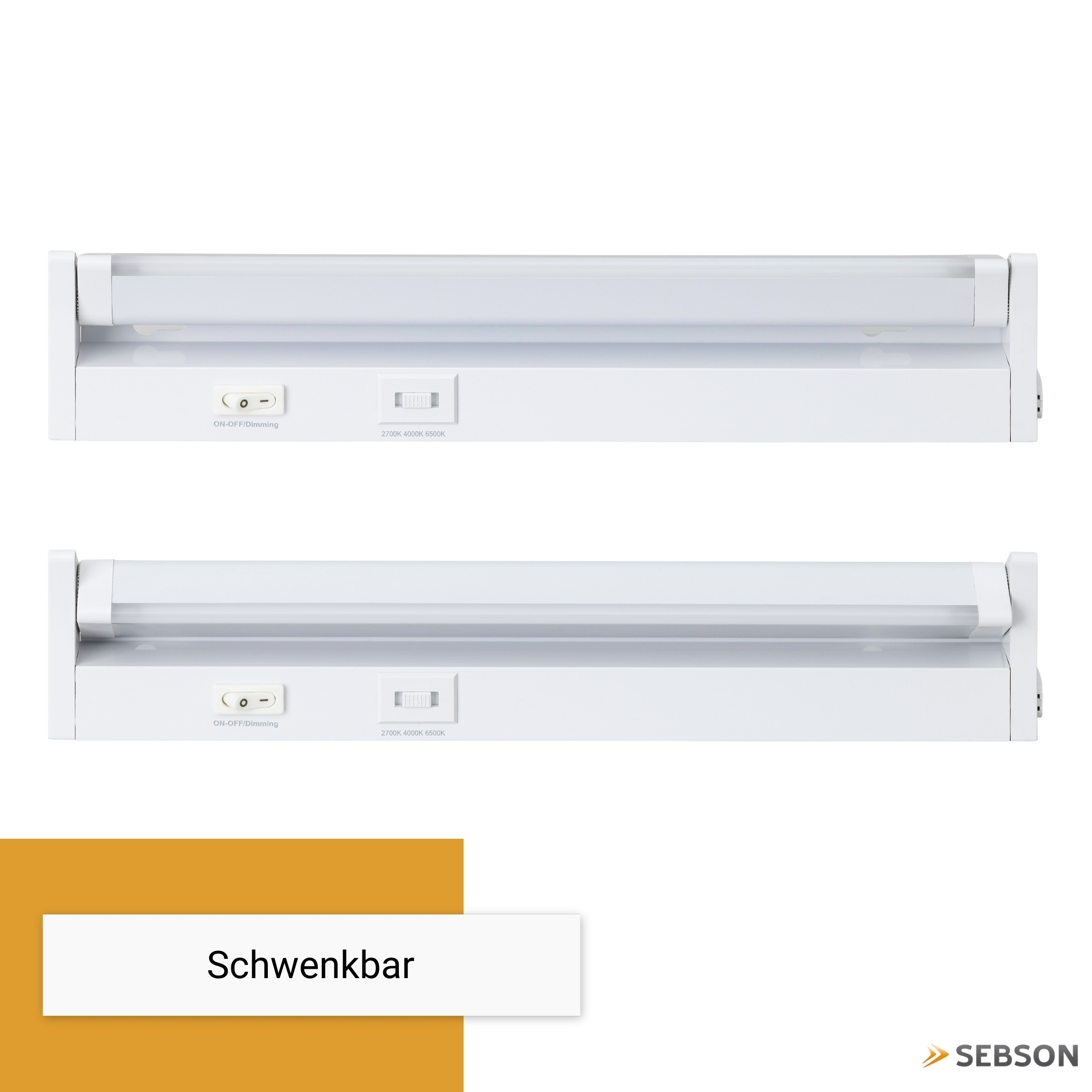 LED Unterbauleuchte für flexible Möbel- und Küchenbeleuchtung von SEBSON. Die integrierten LEDs werden bequem per Schalter bedient und lassen sich in drei Helligkeitsstufen dimmen. Außerdem stehen drei Lichtfarben bei dieser Lichtleiste zur Wahl – warmweiß, neutralweiß oder kaltweiß – passend zu Raum und Anwendung. Der schwenkbare Leuchtenkopf dieser LED Unterbauleuchte ermöglicht eine gezielte Ausrichtung auf Arbeitsflächen oder Regalen. Dank Steckeranschluss, schlanker Bauform und optionaler Kopplung mit einer zweiten Unterbauleuchte ist die Montage unkompliziert und vielseitig.