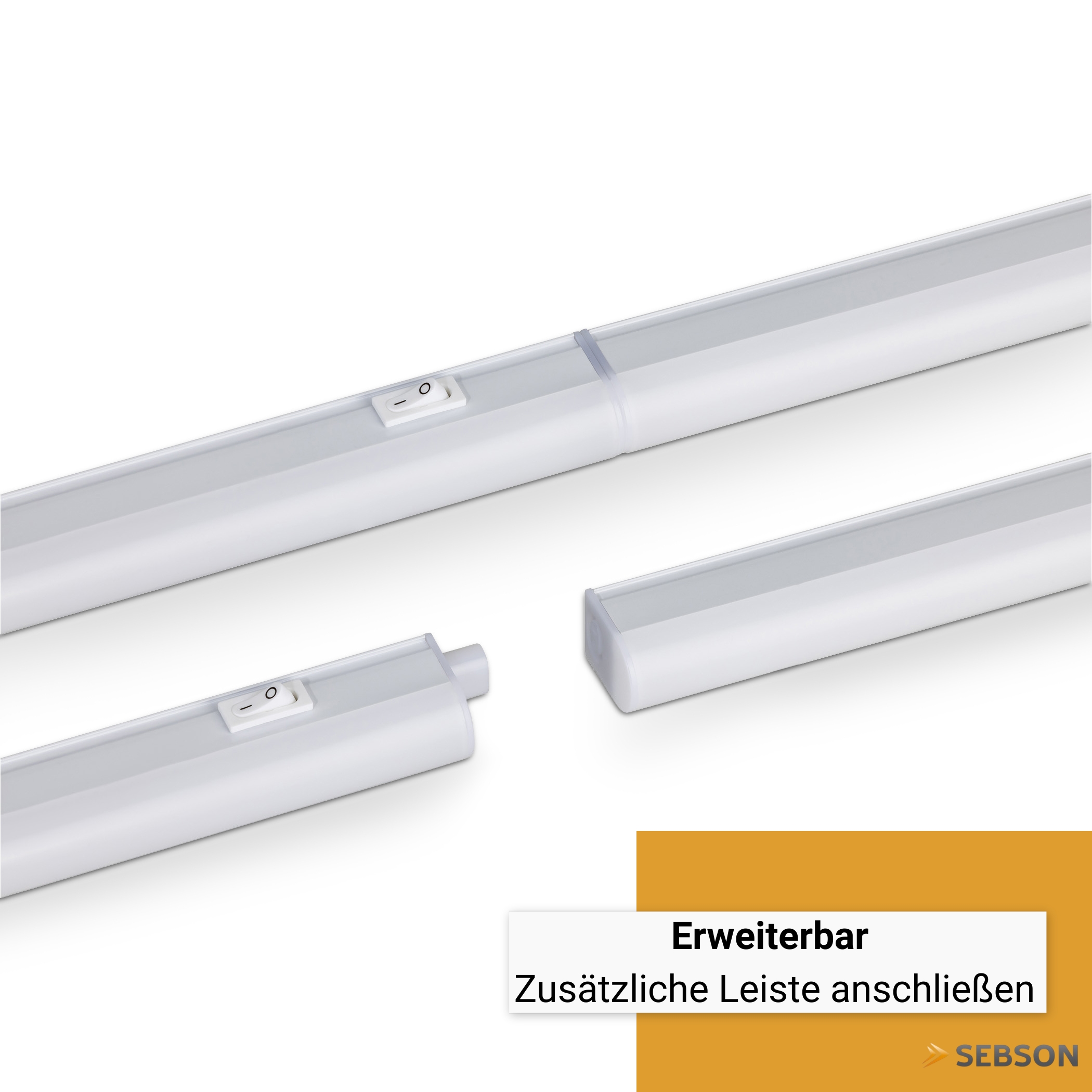 LED Unterbauleuchte von SEBSON für indirekte Beleuchtung im Innenbereich. Durch das schlanke Design lässt sich diese LED Leiste dezent unter Hängeschränken, an Regalböden oder anderen Flächen montieren und eignet sich damit besonders für Küchen und Wohnräume.