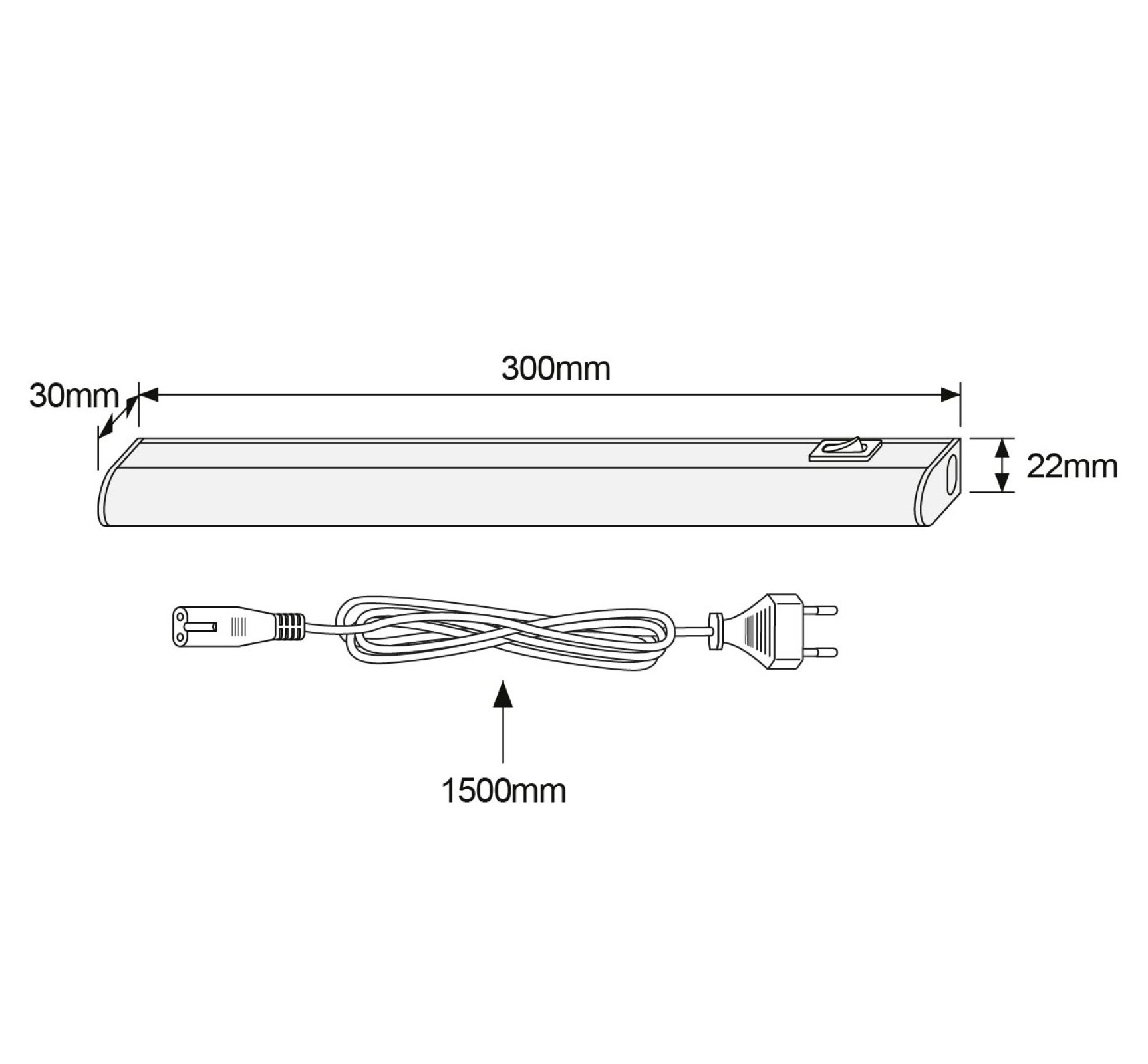Diese LED Unterbauleuchte hat eine Länge von 300mm. Mit einer Höhe von nur 22mm, lässt sich diese Lichtleiste optimal als Unterbauleuchte nutzen. Sie findet Verwendung als Schrankbeleuchtung in der Küche, im Wohnzimmer, Schlafzimmer oder der Abstellkammer. Wo auch immer Sie gezielte und sparsame Beleuchtung benötigen, ist diese LED Unterbauleuchte hervorragend geeignet. Die Helligkeit liegt bei 800 Lumen. Die Leistung beträgt dabei nur 5W. Vergleichbar ist diese Helligkeit mit einer 60W Glühlampe. Die Farbtemperatur liegt bei neutralweißen 4000K. Die LEDs sind bei dieser Lichtleiste fest verbaut und nicht austauschbar.