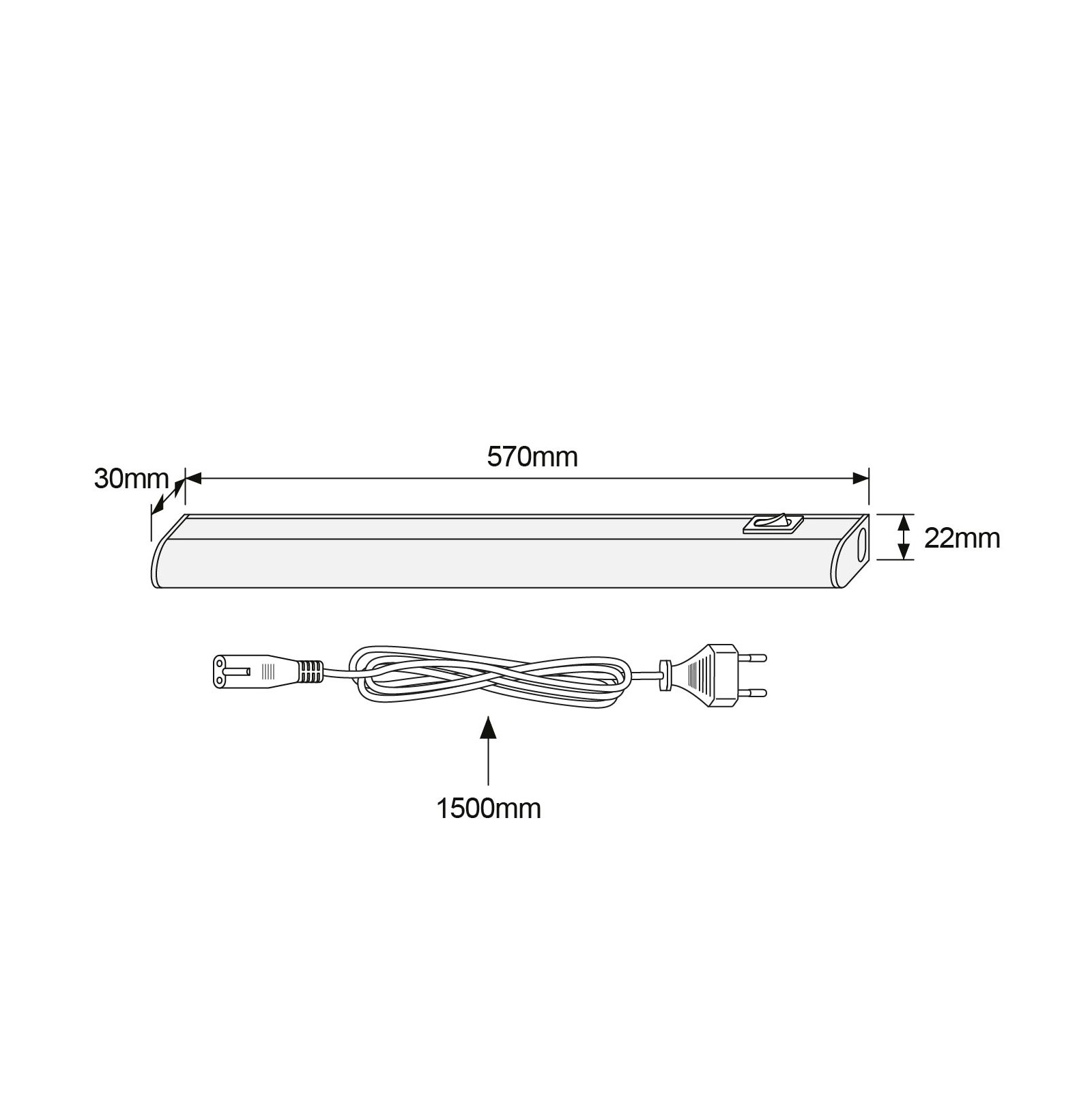 Eine LED Unterbauleuchte, optimal zur zusätzlichen Ausstattung mit Licht. Die Leuchte mit den zwei beiliegenden Schrauben befestigen und an der Steckdose anstecken - fertig. Ein Schalter ist für bequemes Ein- und Ausschalten an der Stirnseite angebracht. Mit ihrer Höhe von nur 22mm und 30mm Breite lässt sich diese Lichtleiste problemlos an der Unterseite von Oberschränken oder Regalböden nachträglich anbringen.
