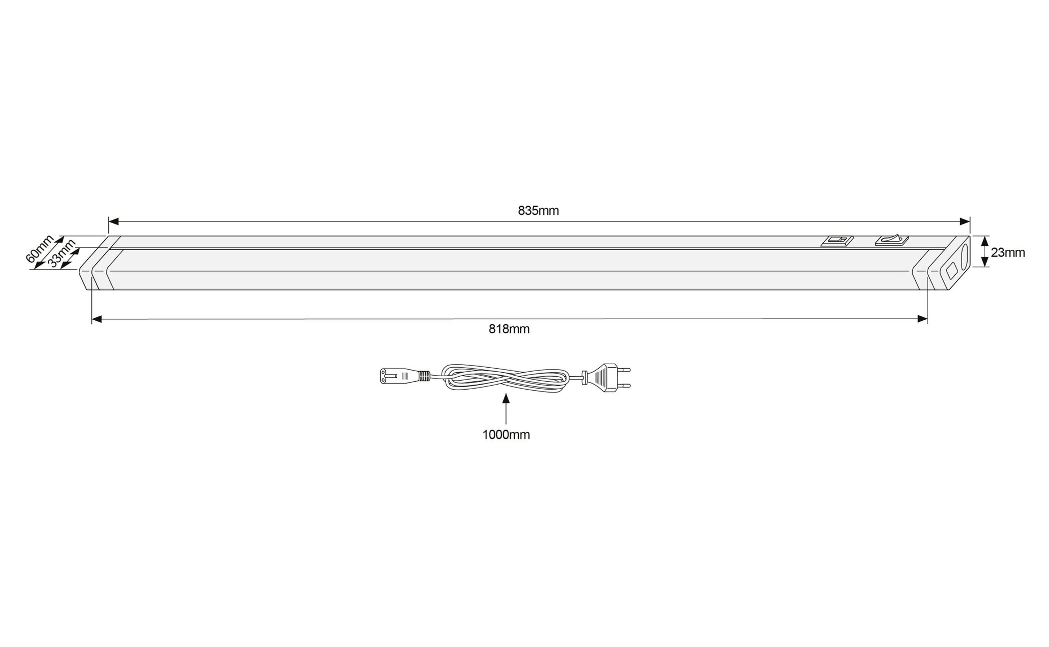 Die LEDs sind fest in der Lichtleiste verbaut, arbeiten energieeffizient und sind auf eine lange Lebensdauer ausgelegt. Über den vorgesehenen Eingang kann bei Bedarf eine zweite Leiste mit einem Verbindungskabel (im Lieferumfang enthalten) angeschlossen werden, sodass sich längere Flächen gleichmäßig beleuchten lassen.