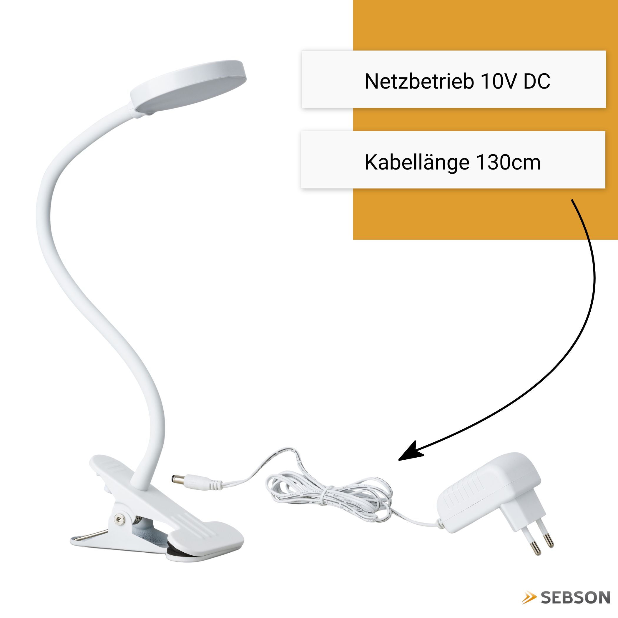 - 1 x SEBSON LED Klemmleuchte