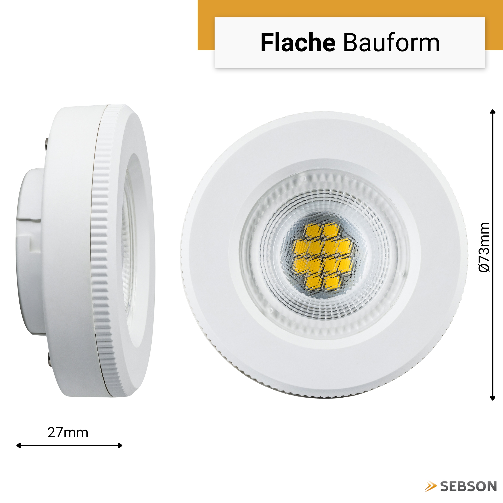 Das SEBSON GX53 LED Leuchtmittel steht für moderne LED-Technologie, hohe Lichtqualität und maximale Energieeffizienz. Mit einer Leistungsaufnahme von nur 2,5 Watt, einer Lichtleistung von 450 Lumen und der Energieeffizienzklasse A bietet diese GX53 LED eine besonders stromsparende und nachhaltige Beleuchtungslösung.