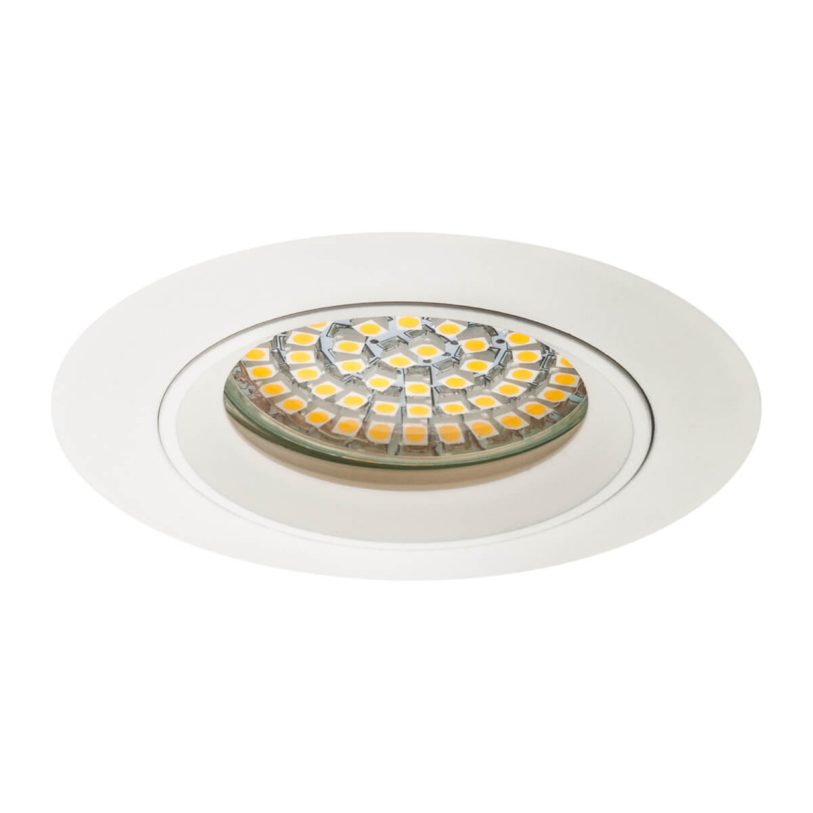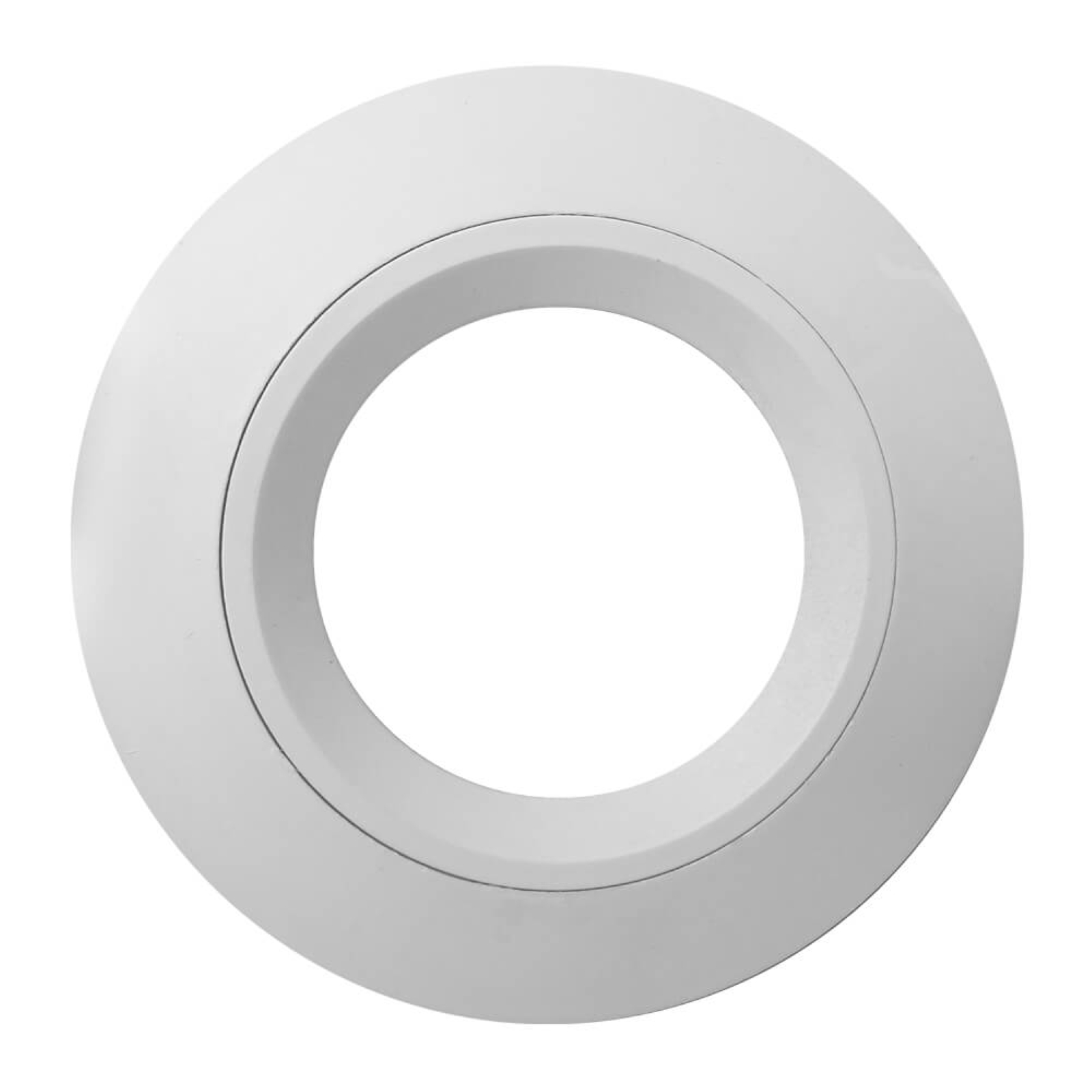 Dieser Decken Einbaurahmen besticht durch seine schlichte Form. Die mattweiß beschichtete Oberfläche fügt sich dezent in eine weiße Decke ein. Die leicht konische Rosette mit nur 1 mm Stärke am äußeren Rand geht optisch fast nahtlos in die Deckenoberfläche über. Die große Facette des inneren Halteringes (Rosette) wirkt edel. Er ist einfach aufgesteckt und hält die Lampe im Rahmen ohne unschönen Sprengring (Ringfeder).